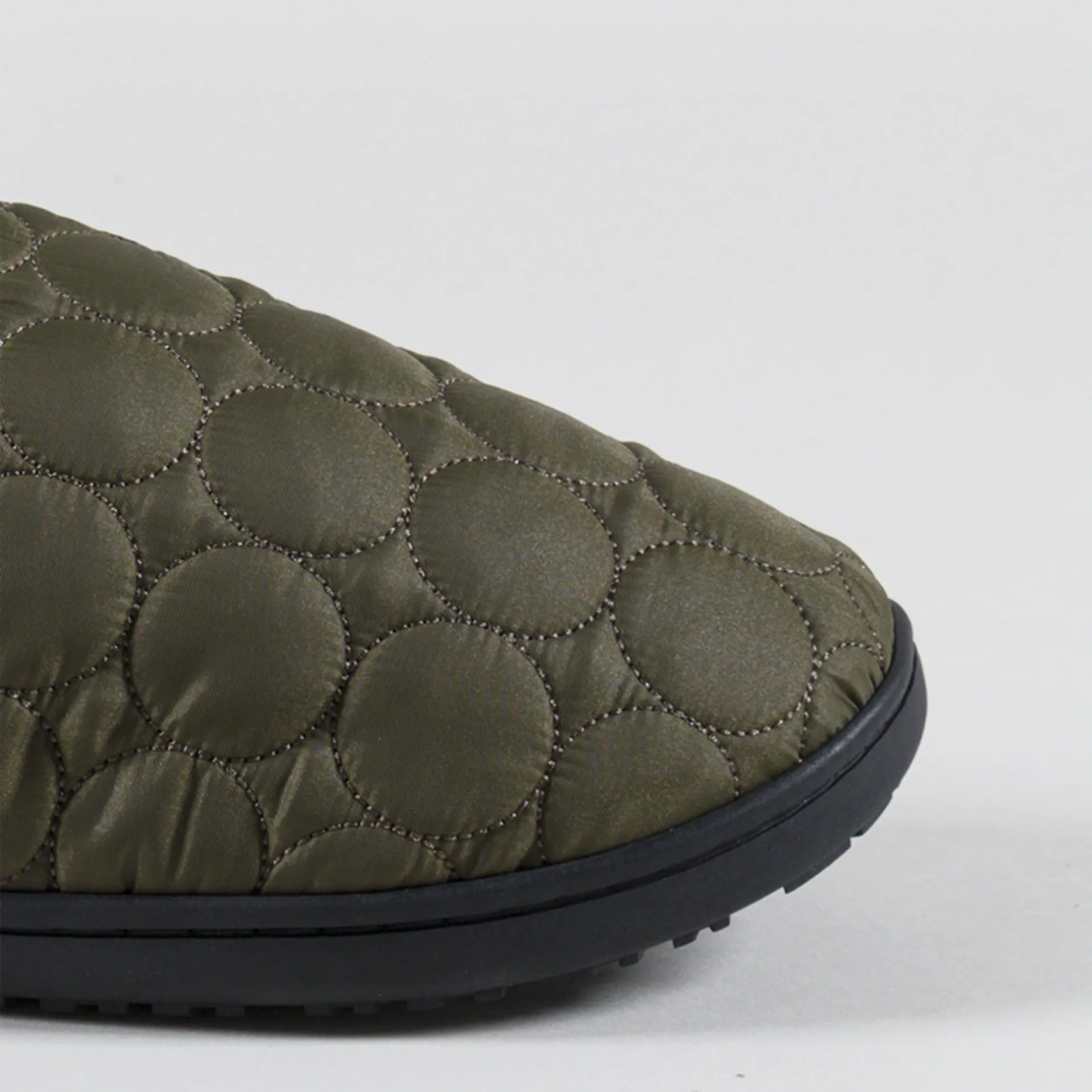 A pair of winter slippers from Subu Tokyo, made from a water-resistant Teflon-coated shell which is padded for additional insulation, and sits upon a durable and grippy rubber outsole and tread.