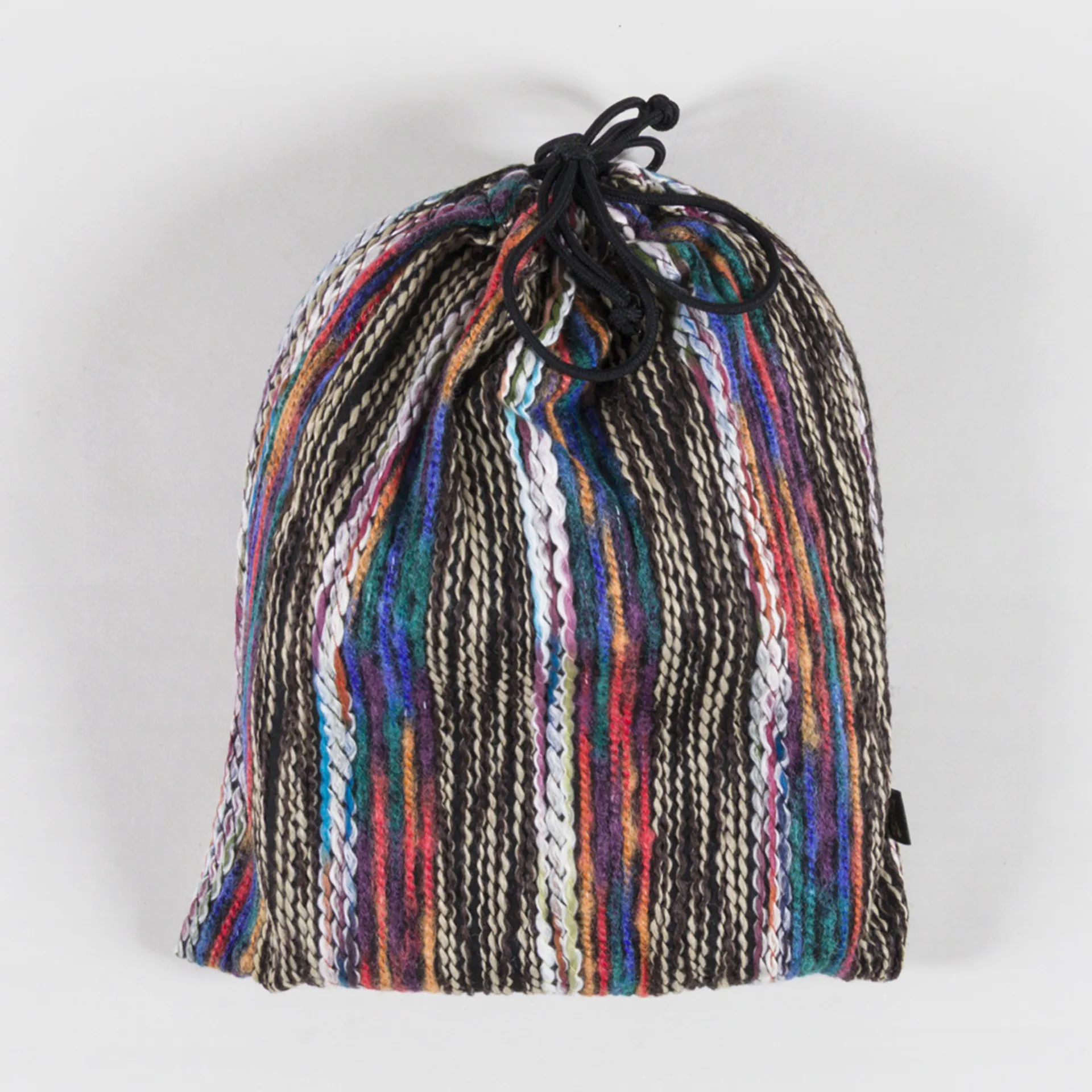 A pair of winter slippers from Subu Tokyo, made with a Kaleidoscope design with a knit-like texture and sits upon a durable and grippy rubber outsole and tread.