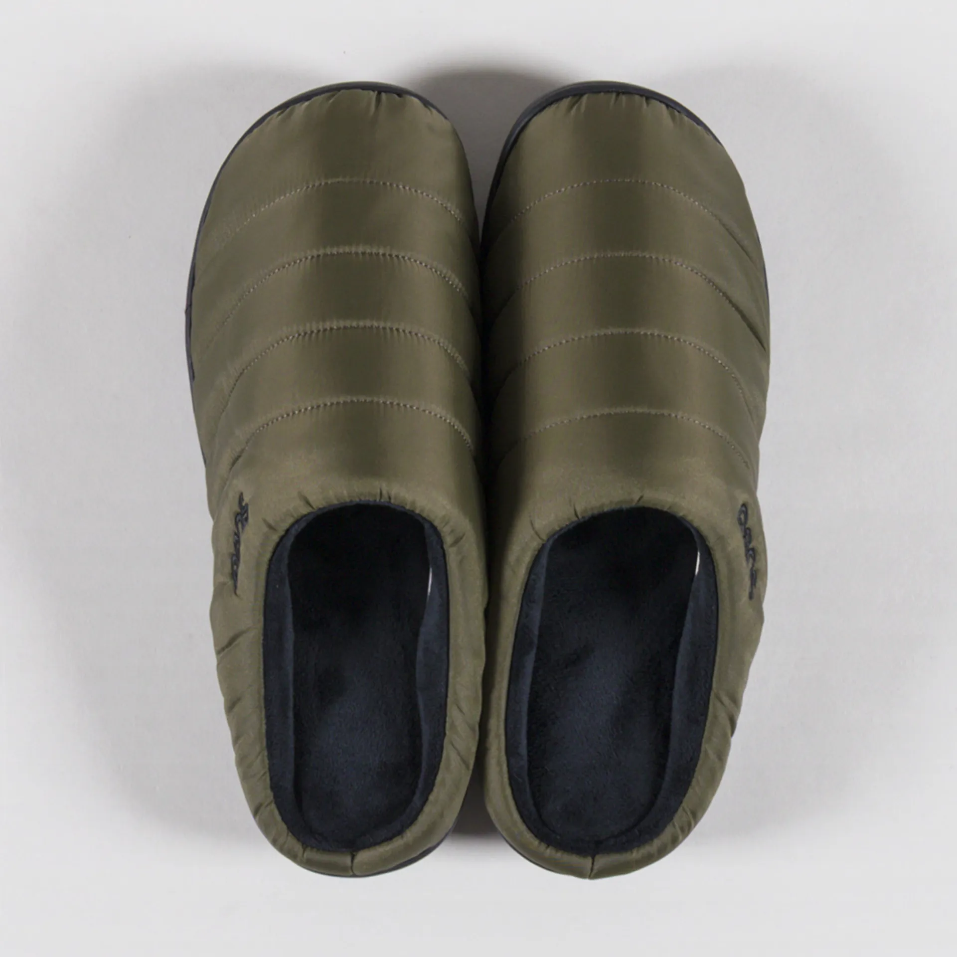 A pair of winter slippers from Subu Tokyo, made from a water-resistant Teflon-coated shell which is padded for additional insulation, and sits upon a durable and grippy rubber outsole and tread.