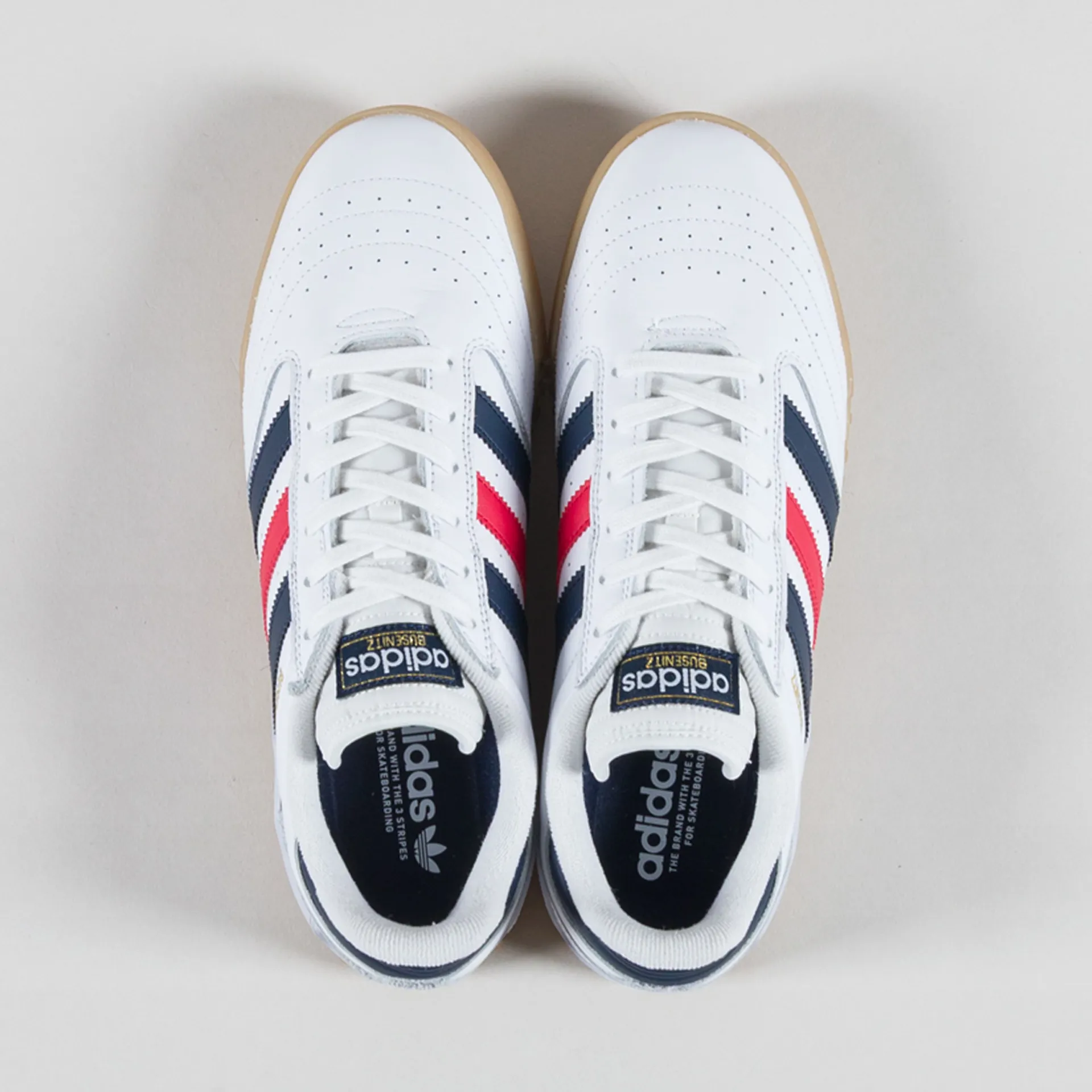 A new variation of Adidas Skateboarding's Busenitz silhouette, made from an upper of leather with a padded mesh lining, canvas tongue and an expanded PU sockliner.