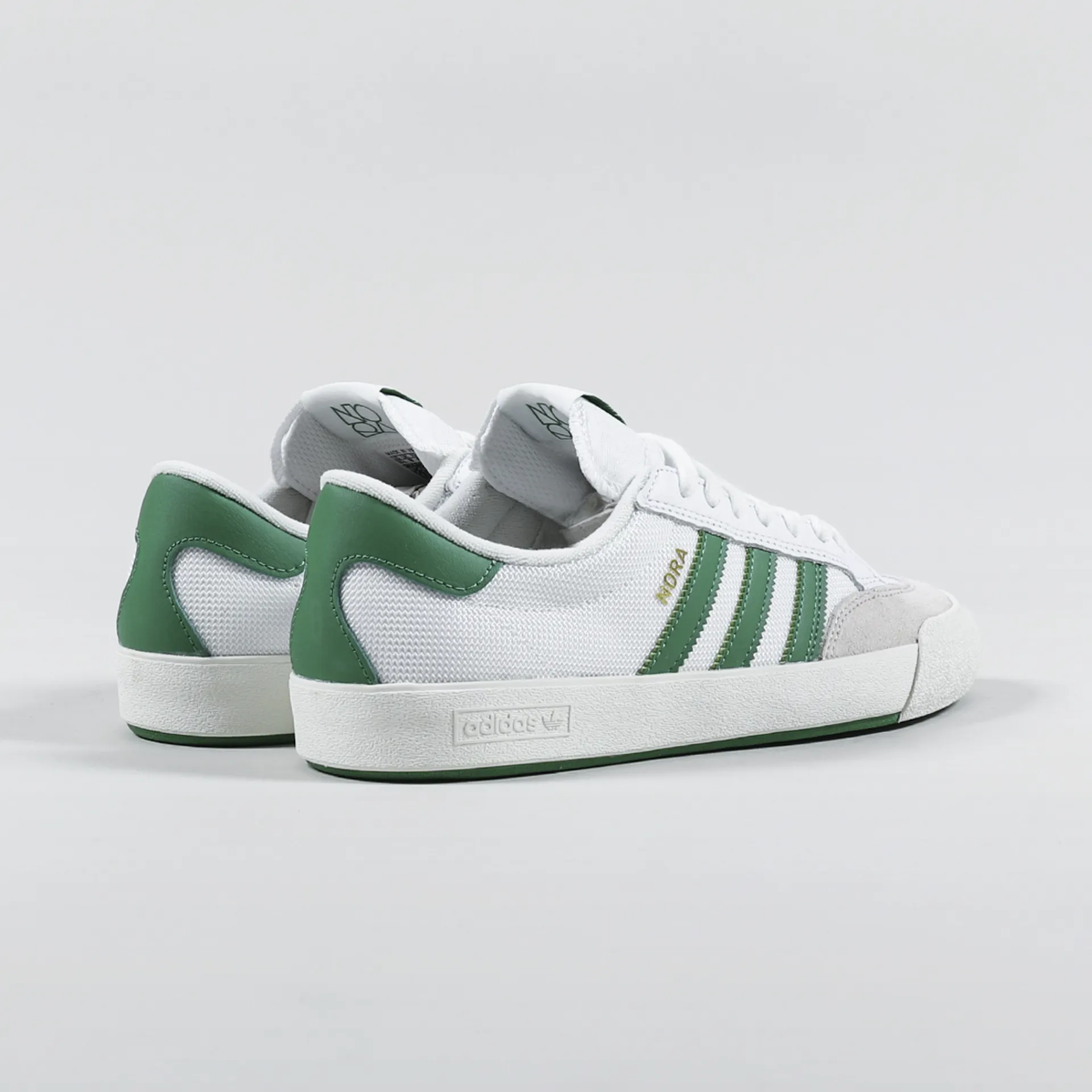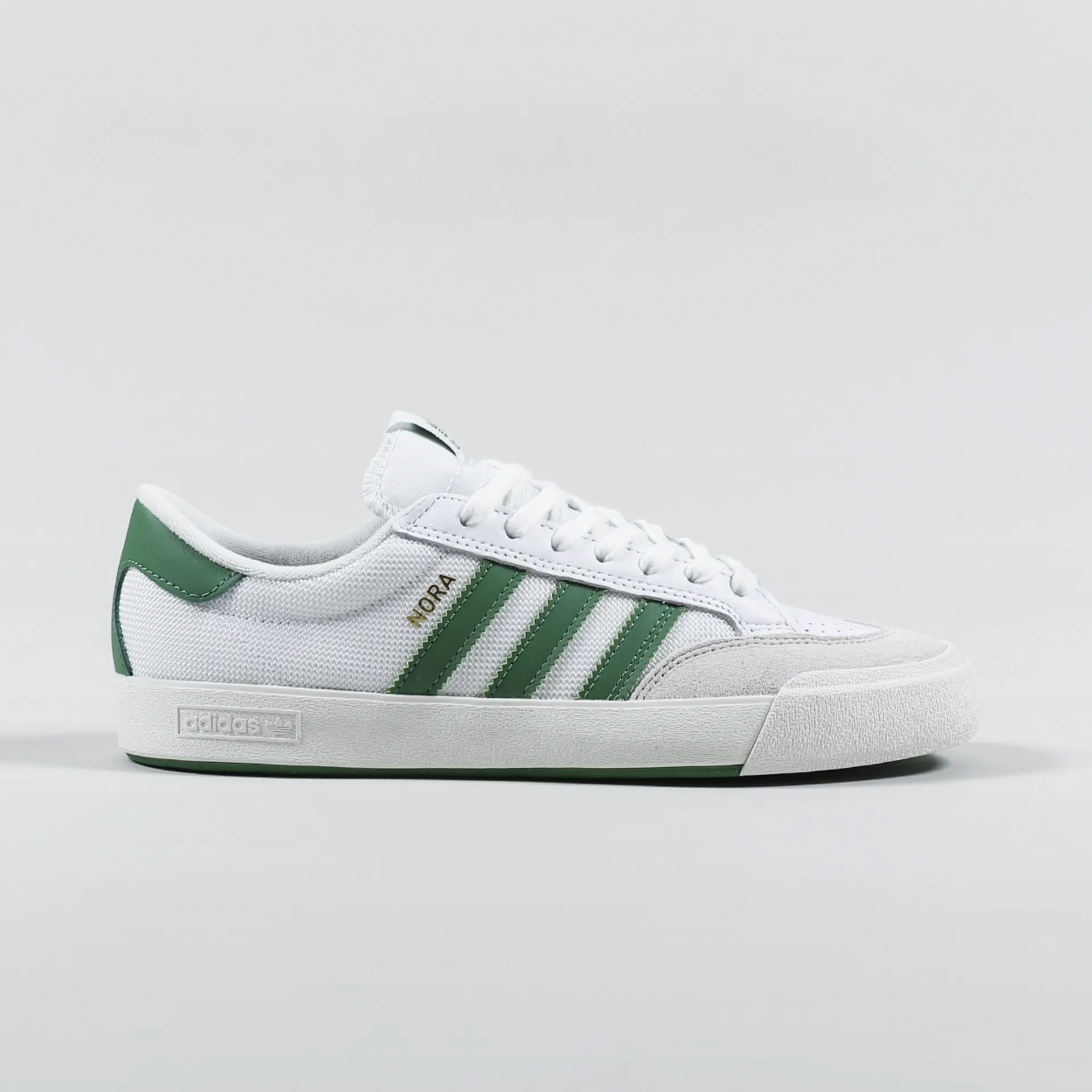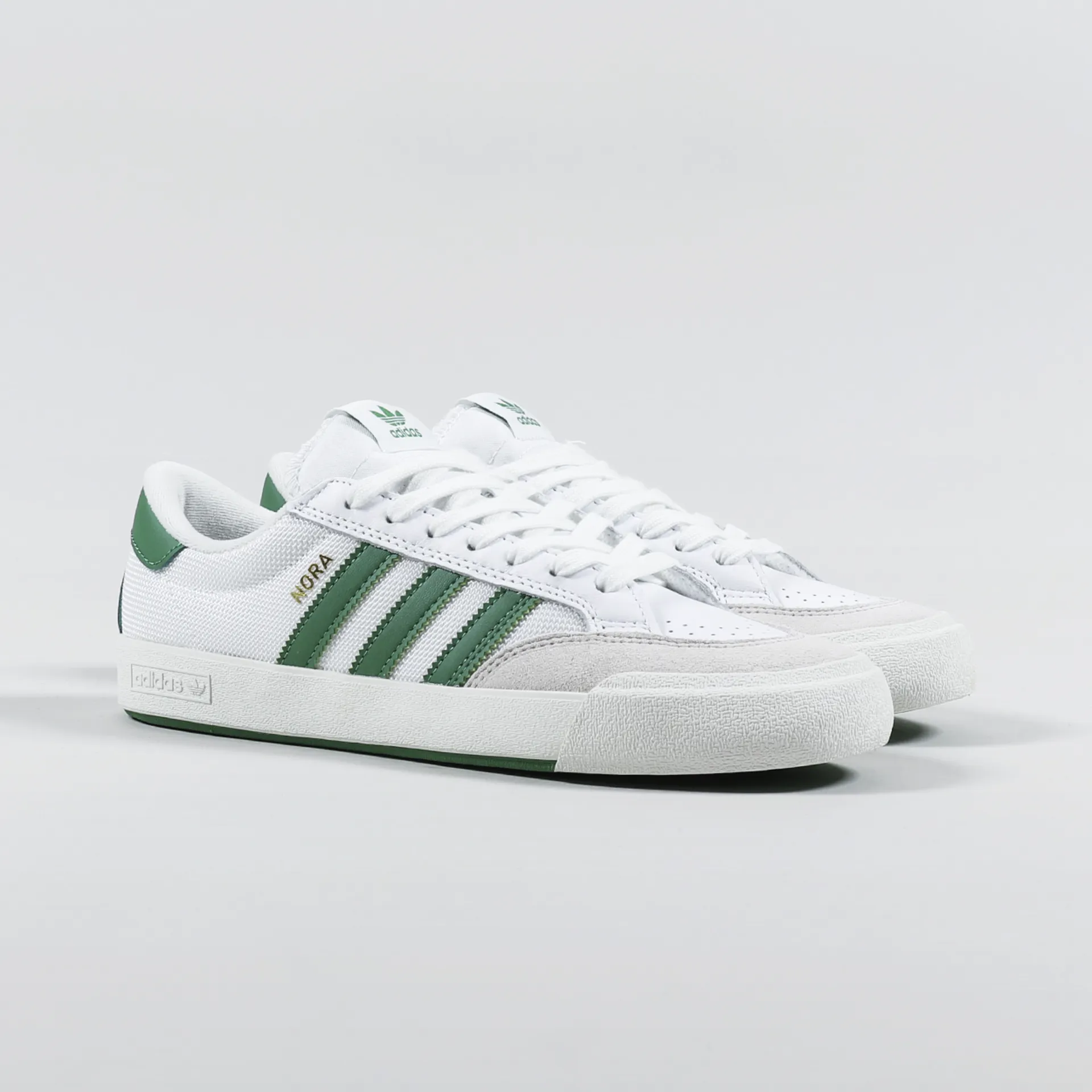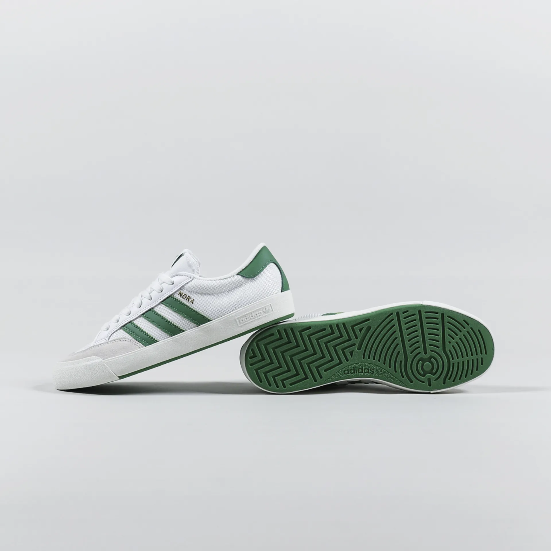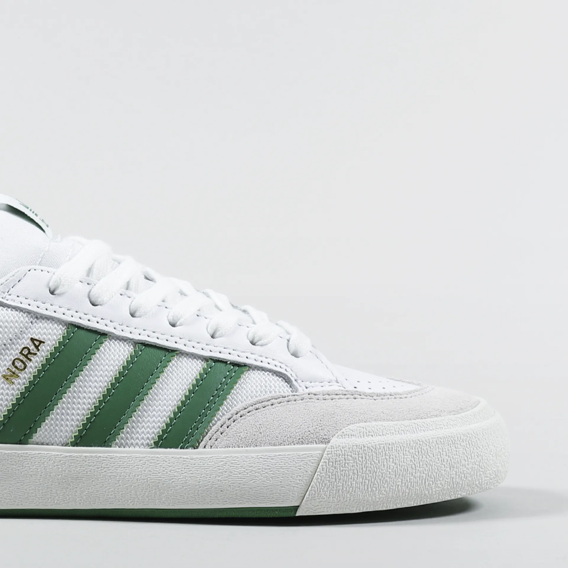 A pair of trainers from adidas Skateboarding for team rider Nora Vasconcellos. It's made from a blend of mesh to the sides, leather to the tongue and a suede toe guard. It has a vulcanised rubber outsole with a grooved tread for board feel.