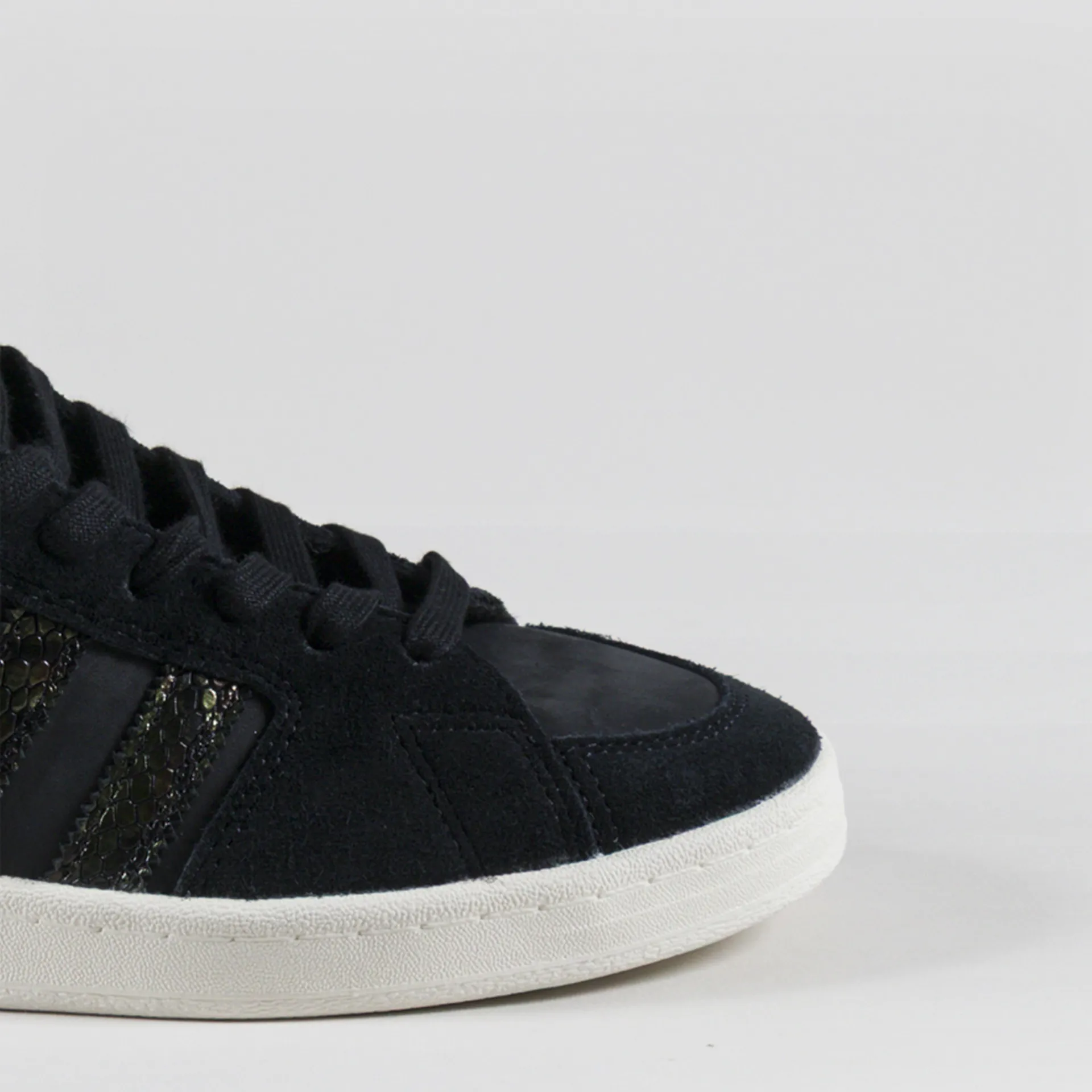 A pair of Superskate Shoes from the Adidas x Kader collaboration. Constructed with two-texture suede uppers, a textile lining and EVA sockliner for comfort, with a reinforced ollie area and toe for durability. The padded tongue has a gold toned Adidas logo, with snake skin stripes to either side and finished with gold foiled Kader writing on the outer side of each shoe.