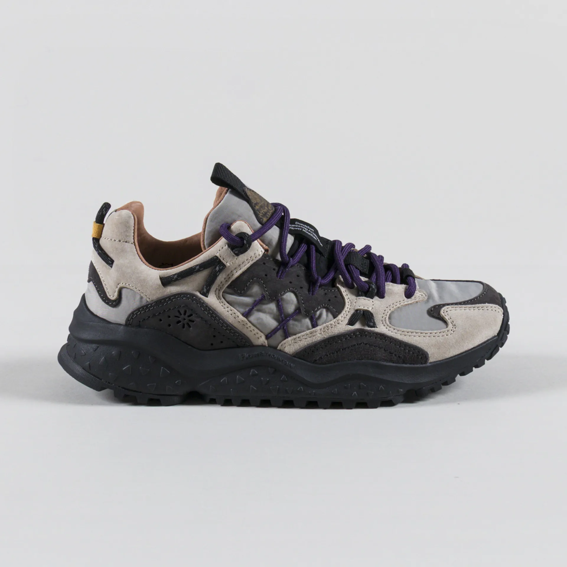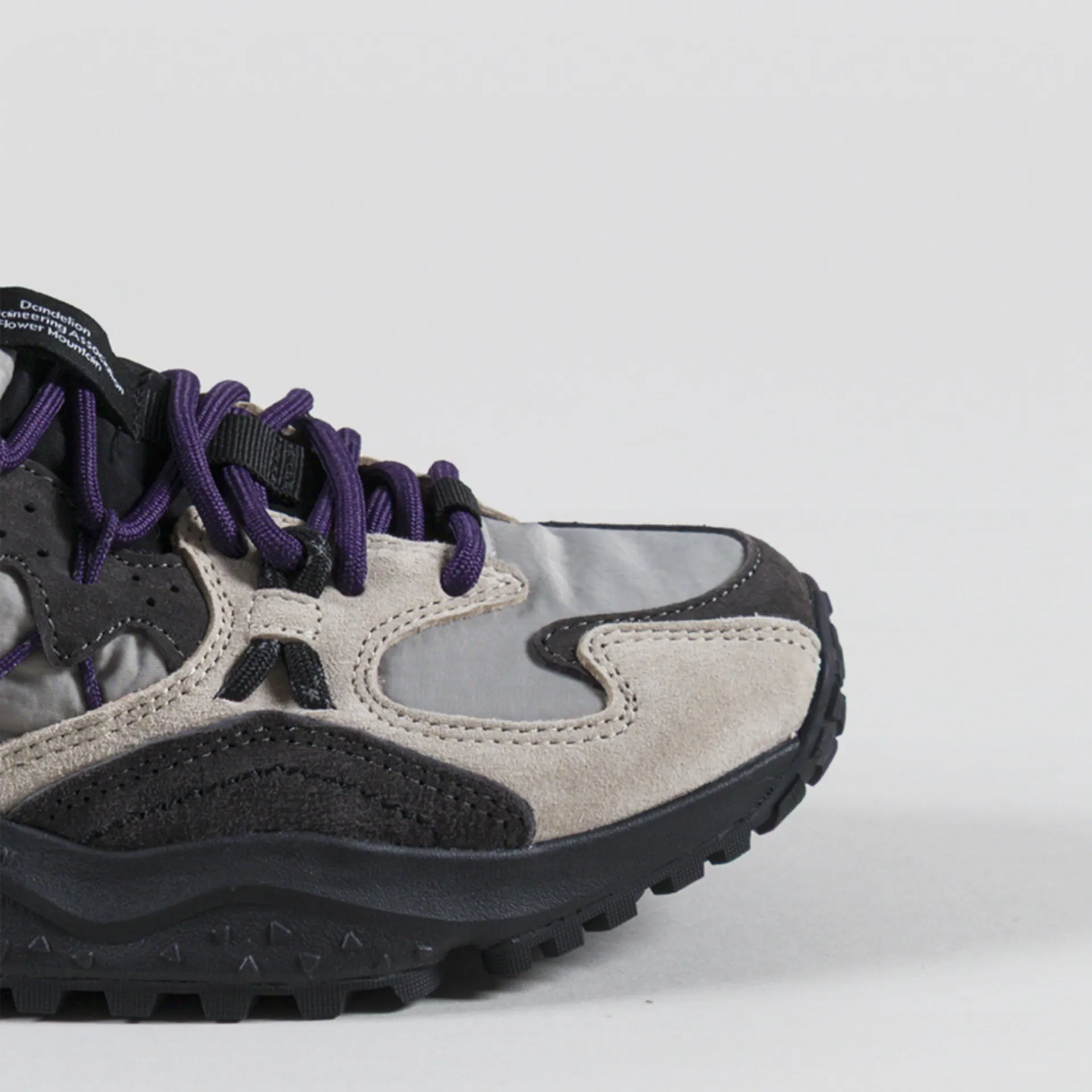 The Yamabushi Shoe from Flower Mountain is constructed with suede and technical fabric panels. The laces are set through reinforced eyelets. Inside, the shoe has a breathable lining and a cork insole with anti‑bacterial properties. The sole is made from rubber and features a tread pattern for grip. Finished with classic Flower Mountain branding throughout.