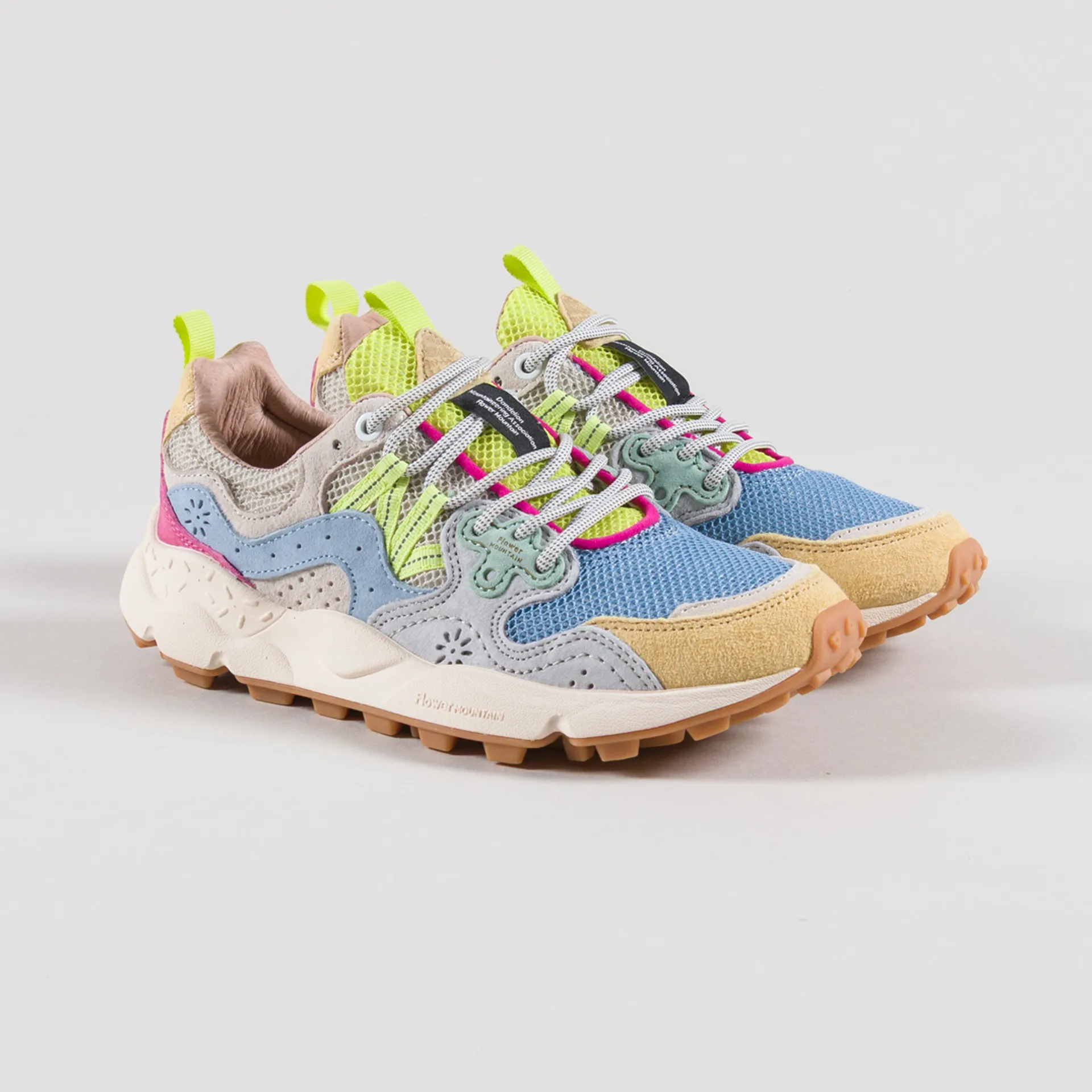 Flower Mountain Womens Yamano 3 Shoes Yellow White Azure Suede Mesh