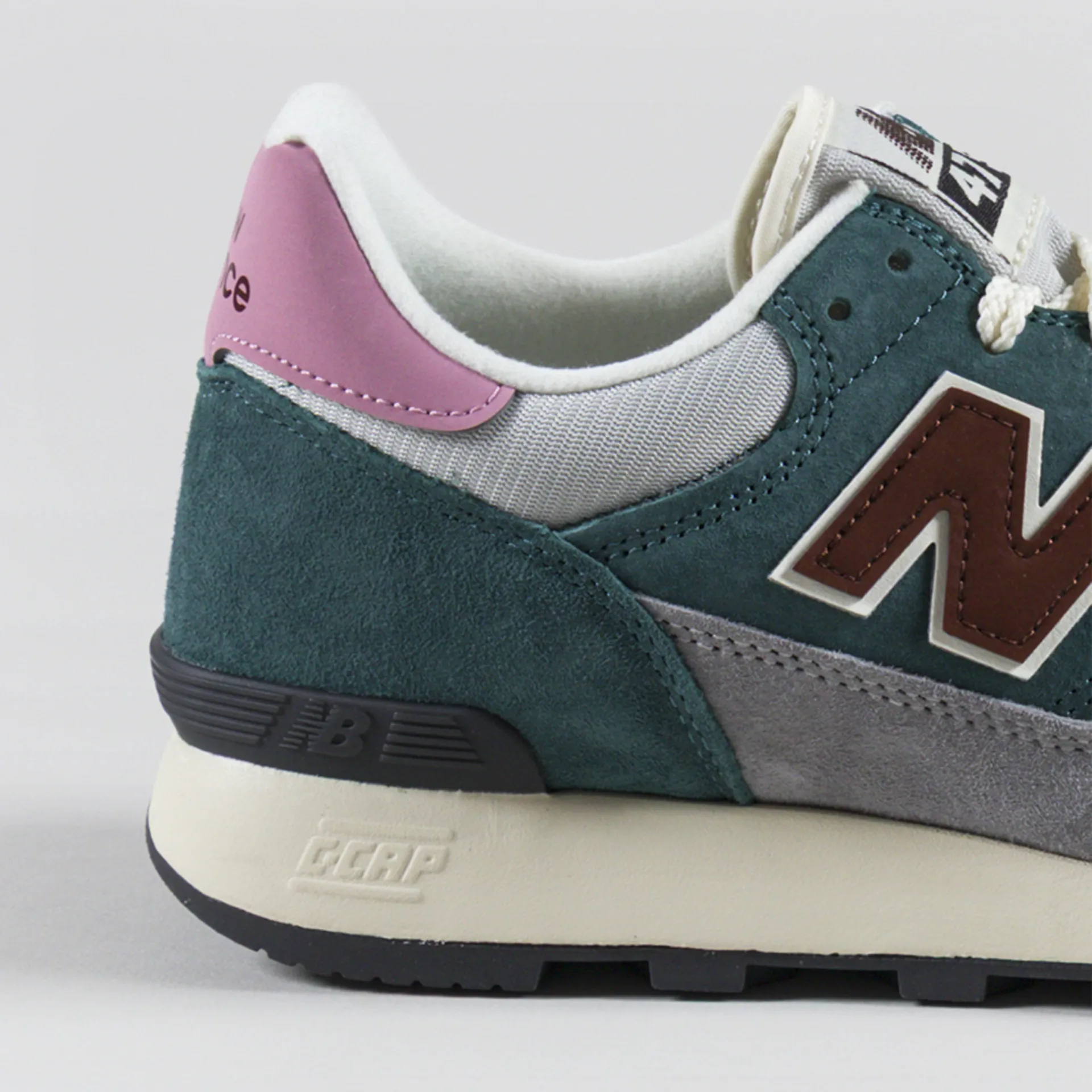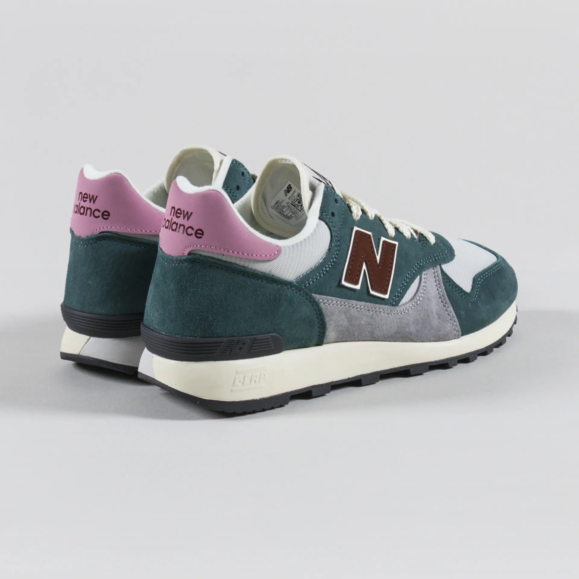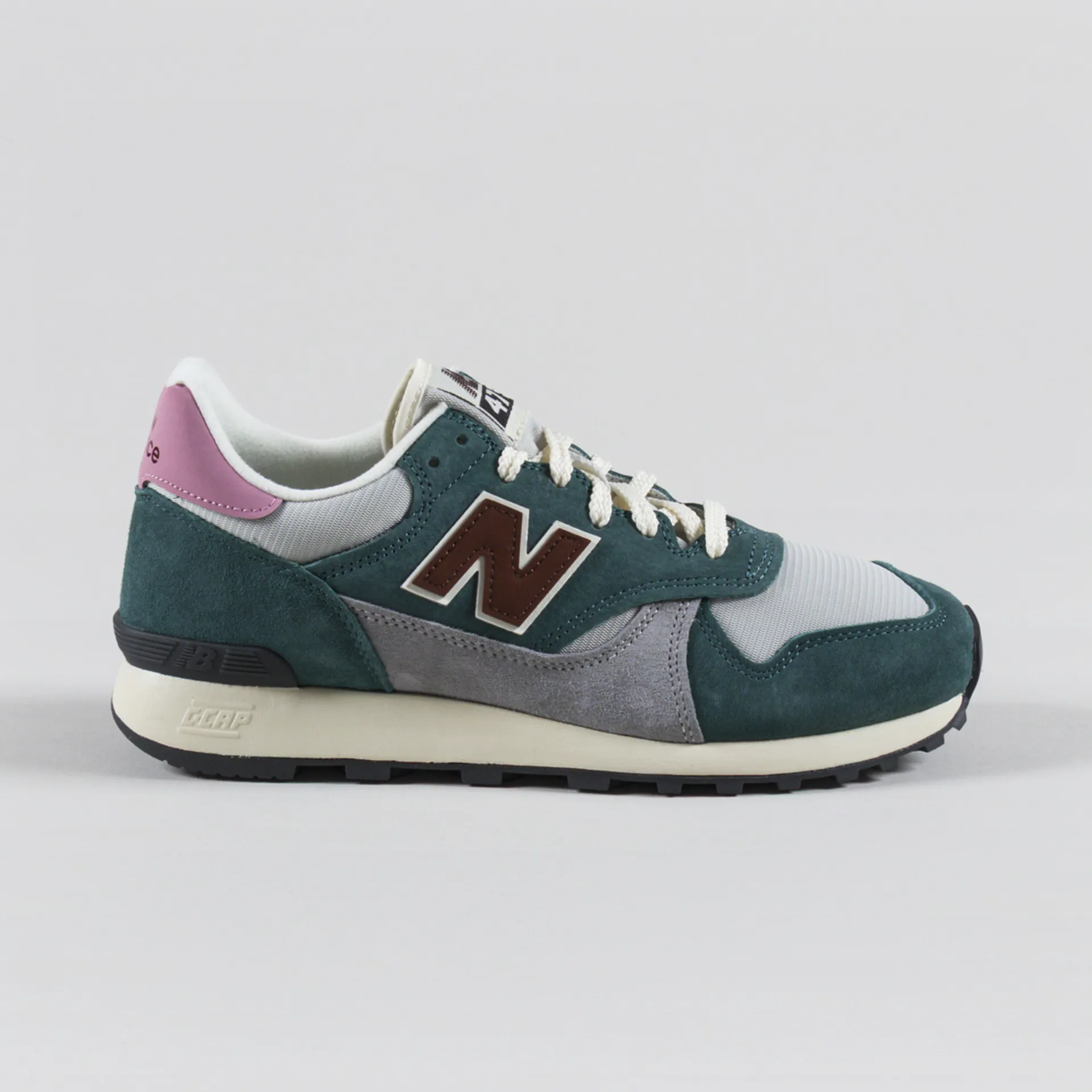 The 475 Shoes from New Balance were originally released in 1986, designed as a high-milage daily running shoe. The modern version of the shoe is constructed with mesh uppers, featuring premium suede overlays in a tonal colour palette. They have a lugged outsole, CR heel device and a combination of PU and C-CAP midsole. Branding consists of the standard N logos to the uppers, a woven logo to the tongue and printed branding to the heel.