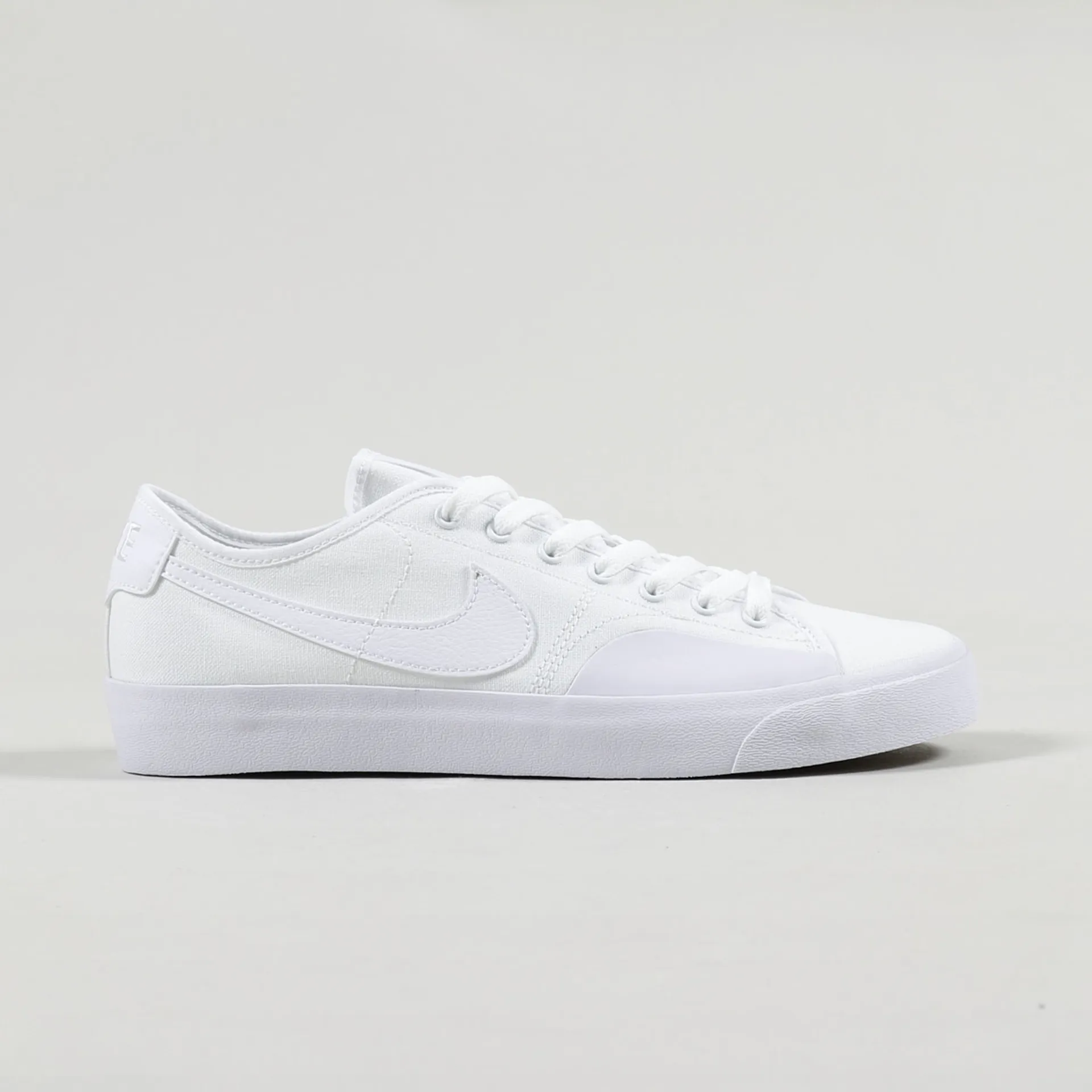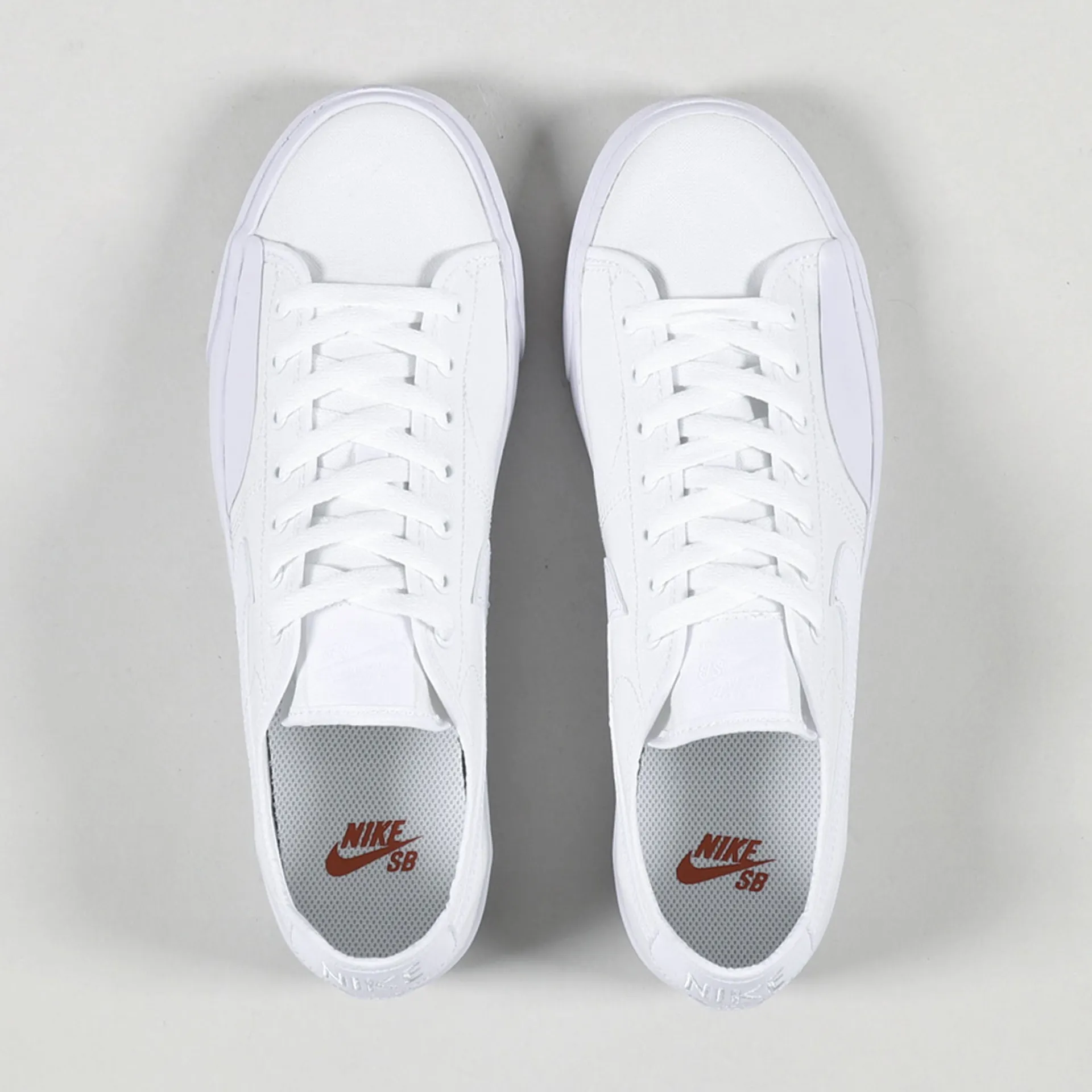 A pair of trainers from Nike SB made from an upper of canvas with ollie reinforcements in the toe. They have a vulcanised rubber outsole featuring an overlay to the outer toe and a grippy herringbone tread.