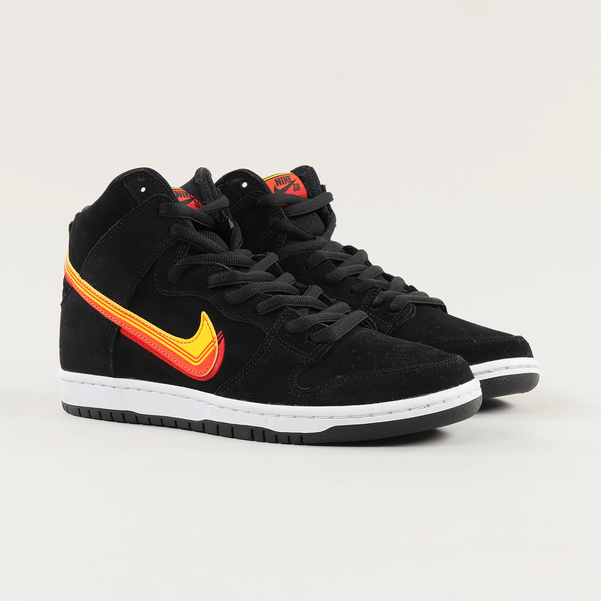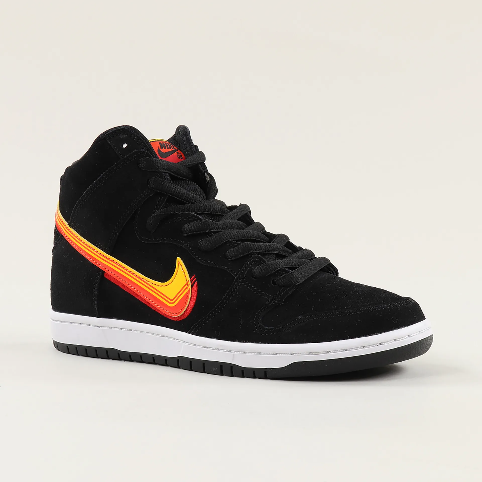 These high trainers from Nike SB are made from a durable suede with a perforated toe and a padded mesh lining and tongue. The sole is made from vulcanised rubber with a synthetic mid and a Zoom Air heel unit in the PU sockliner. It has a woven logo patch to the tongue and special PVC swoosh logos to the sides.