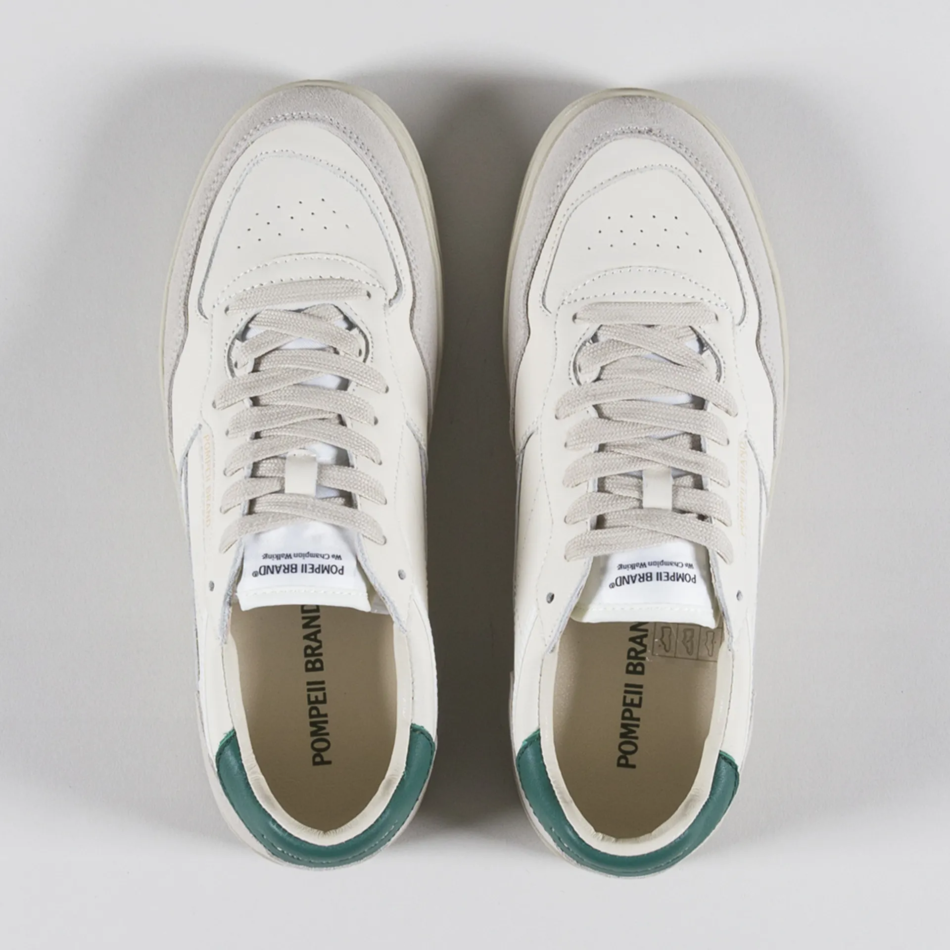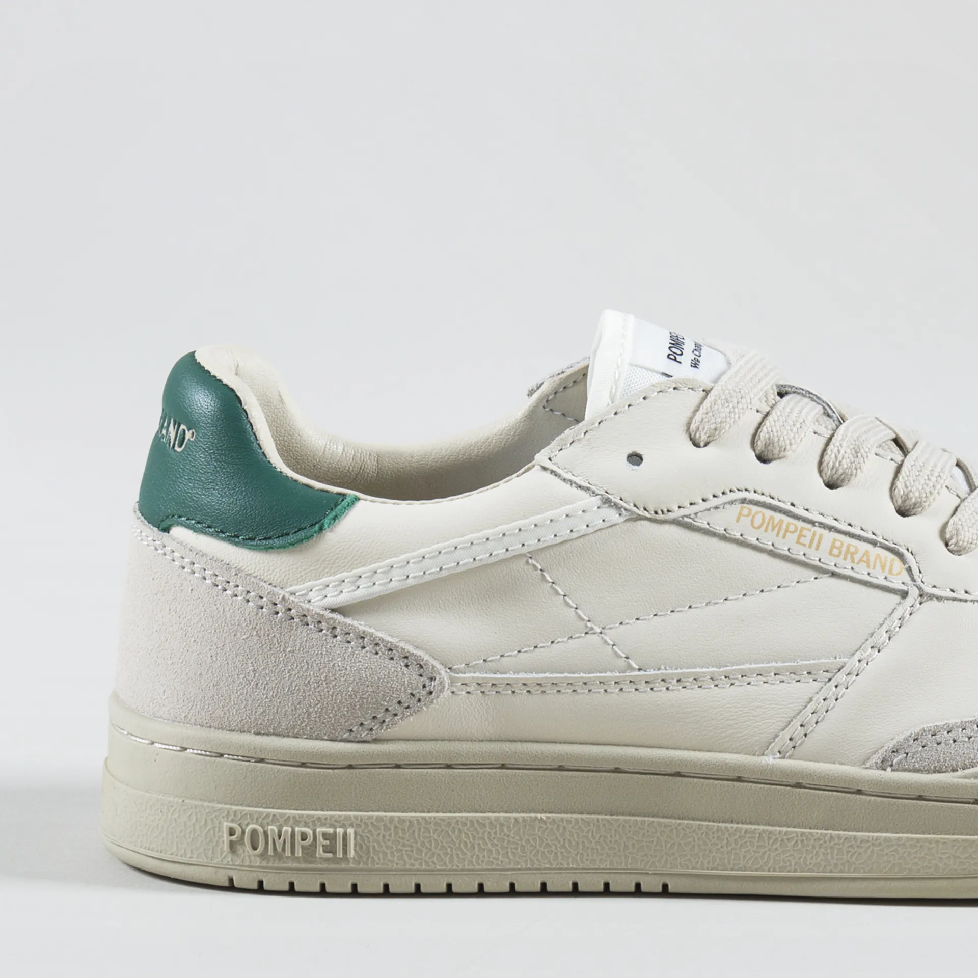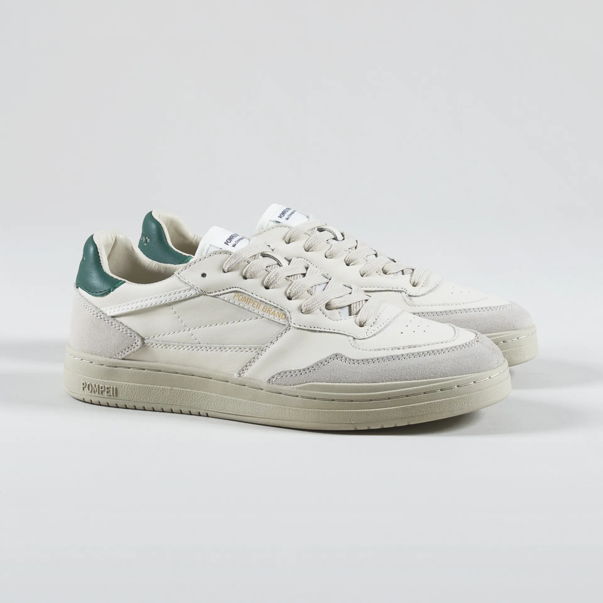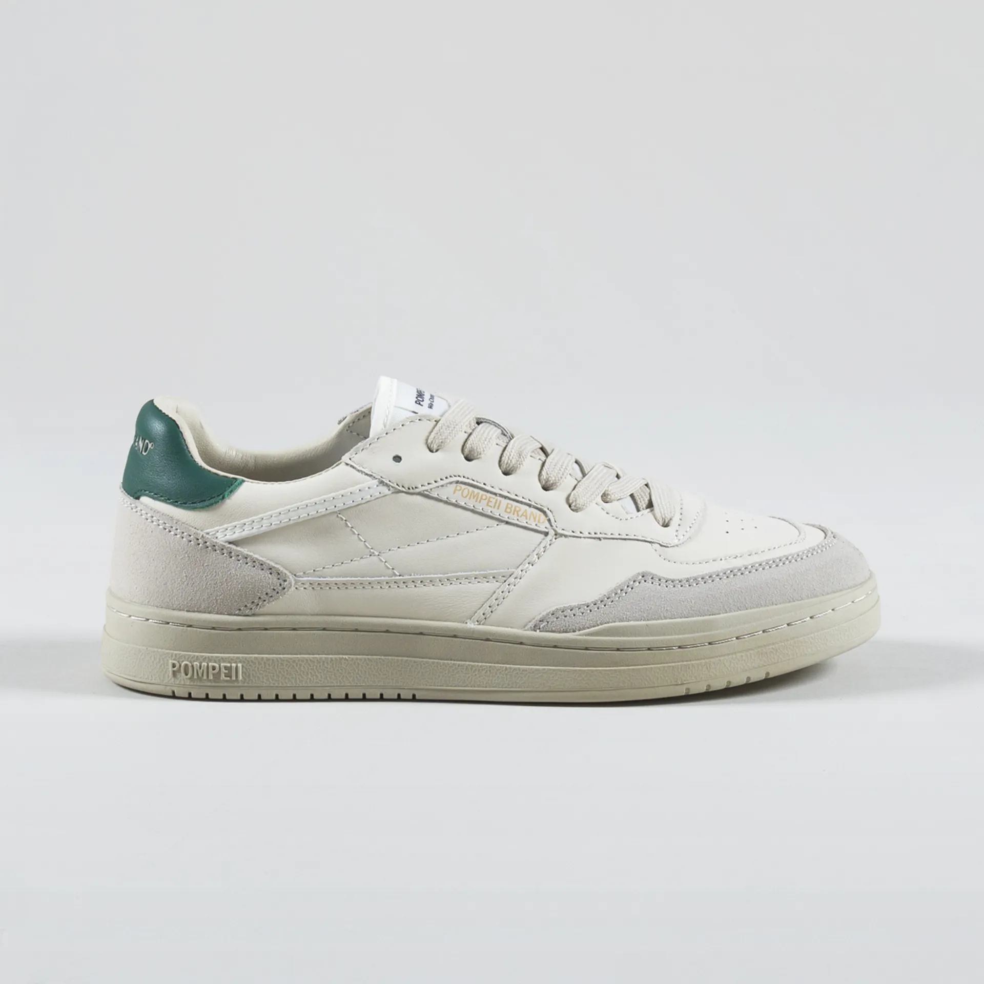 A pair of retro-inspired court shoes from Madrid based brand, Pompeii, which is made from leather uppers, a rubber outsole and cotton laces.