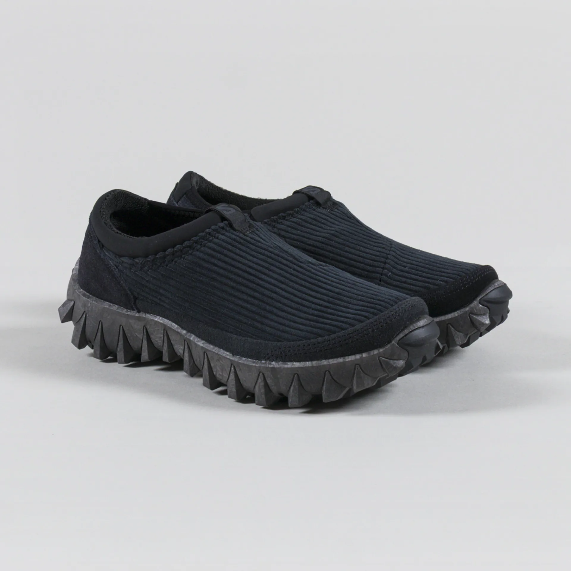 A pair of corduroy snow clogs from Salomon, featuring All Terrain Contagrip, delivering durability and confidence on wet, dry, hard or loose surfaces. The midsole is made with infiniFOAM, a fully recyclable TPU-based foam, with cushioning for comfort. The upper features a soft collar construction, creating a more ergonomic feel, while the textile lining and woolly sockliner provide breathable warmth. Branding consists of a tonal embroidered logo to the heel.
