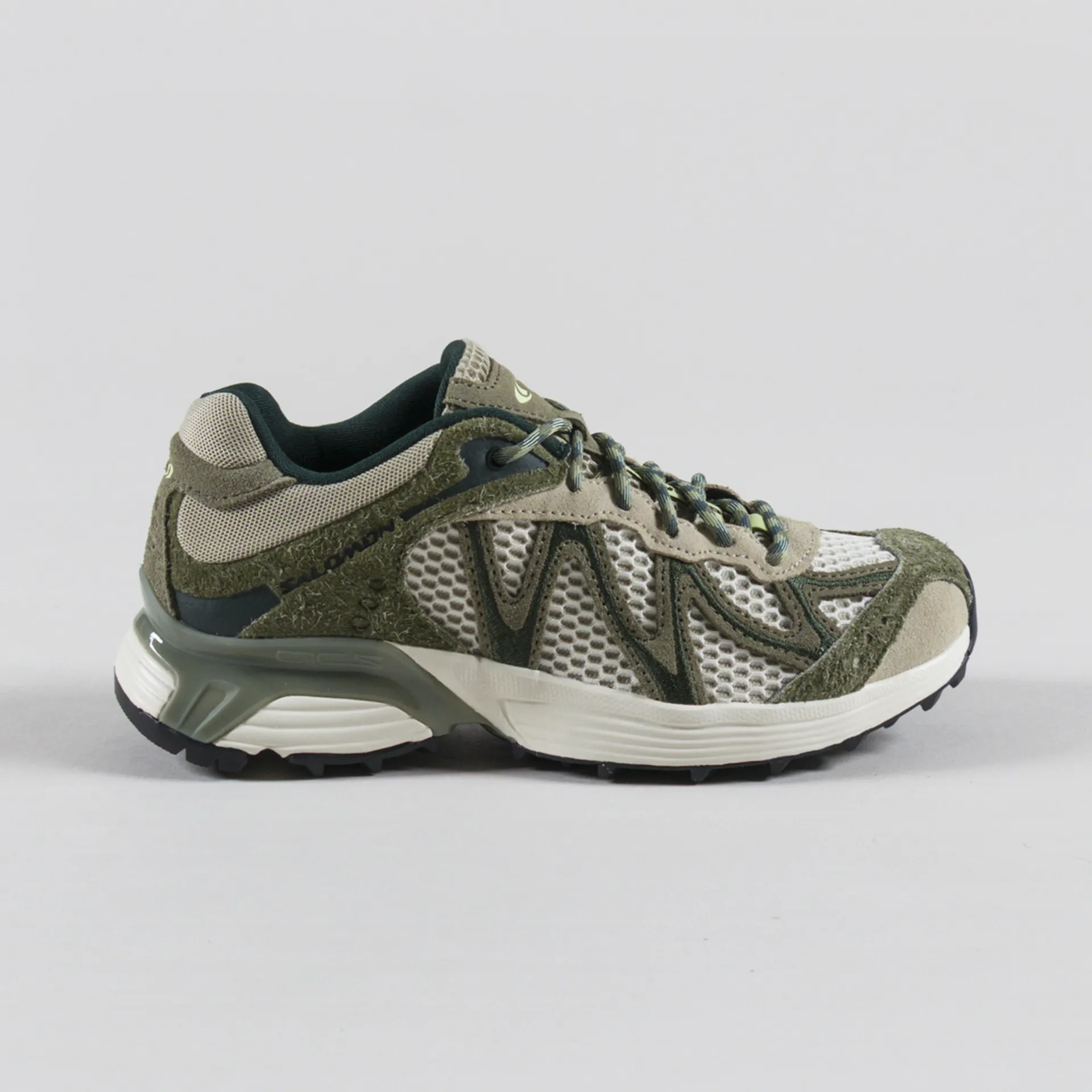 The outsole has chevron lugs, designed for multi-directional grip, improving traction on soft surfaces like mud or loose dirt. Combined with Mud Contragrip, deep, sharp lugs made from a compound that focuses on adhesion on rugged, uneven surfaces. The OrthoLite Diecut sockliner is cut to the shape of the inner shoe, providing cushioning, breathability and durability. Complete with ample branding to the uppers, tongue and heel.