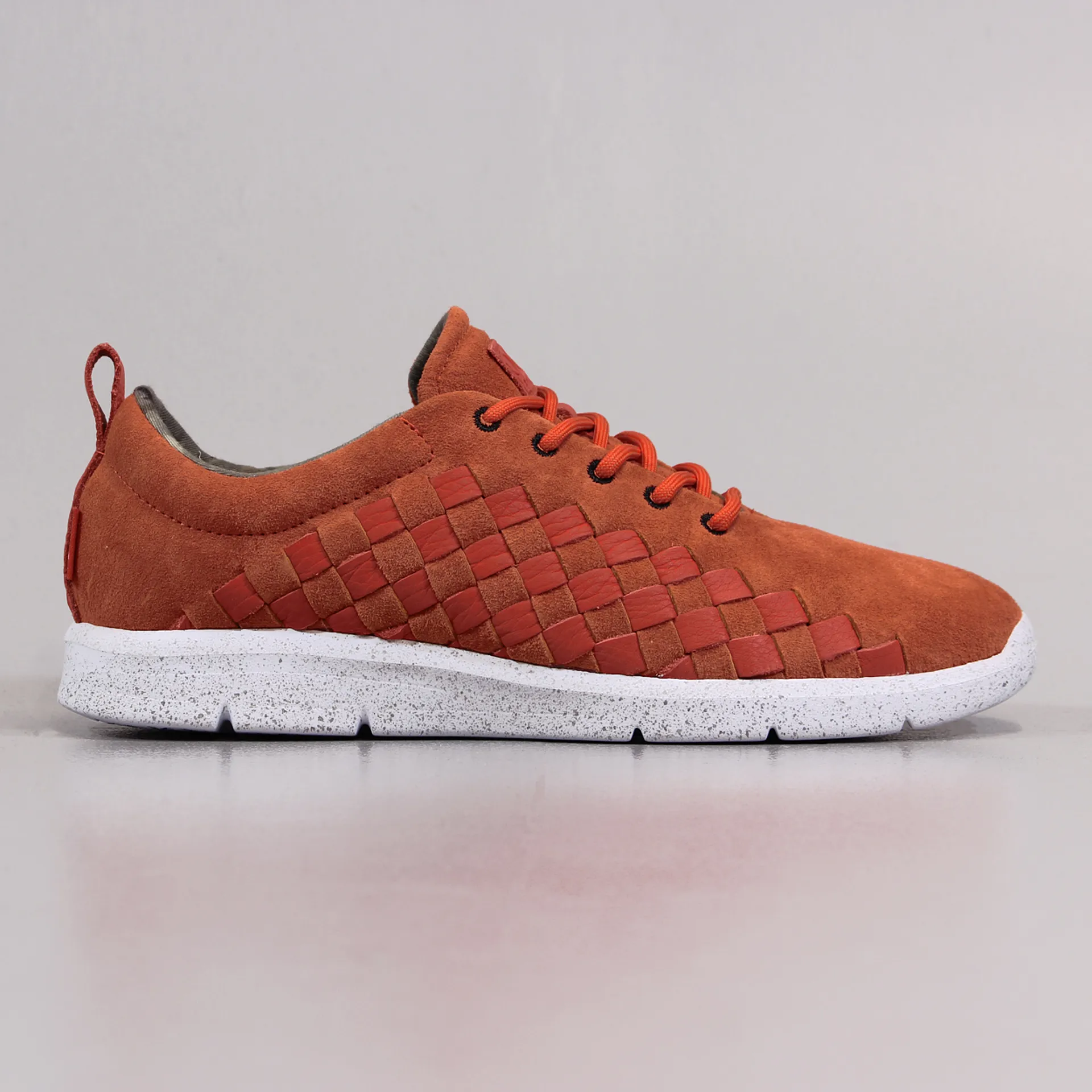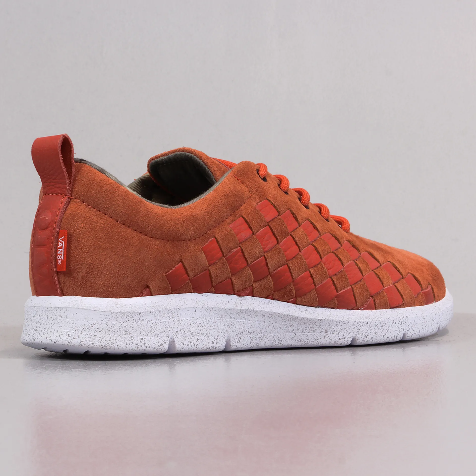 With suede and leather uppers with a sweet woven side design, the Tesella trainers here from Vans OTW come in an orange and white speckle sole colourway.