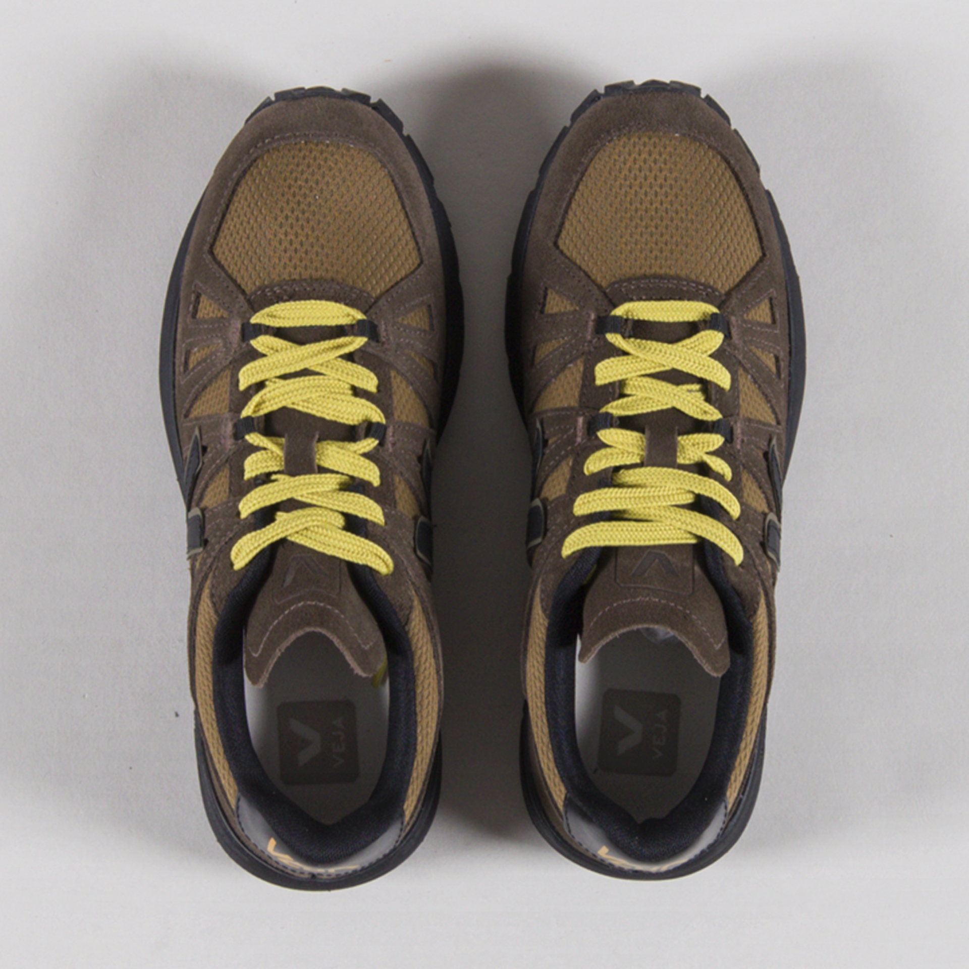 The Salar Shoes from Veja are constructed with Alveomesh uppers, a technical fabric made out of recycled polyester for breathability, flexibilty and lightweight durability. This silhouette features a Vibram sole, co-developed with Veja. It combines eco-friendly materials, such as Amazonian rubber and sugarcane-based EVA, with Vibram's cutting-edge technology. They have suede overlays throughout the uppers, a lightly padded tongue and collar, with leather detailing at the heel and classic rubber V logos.