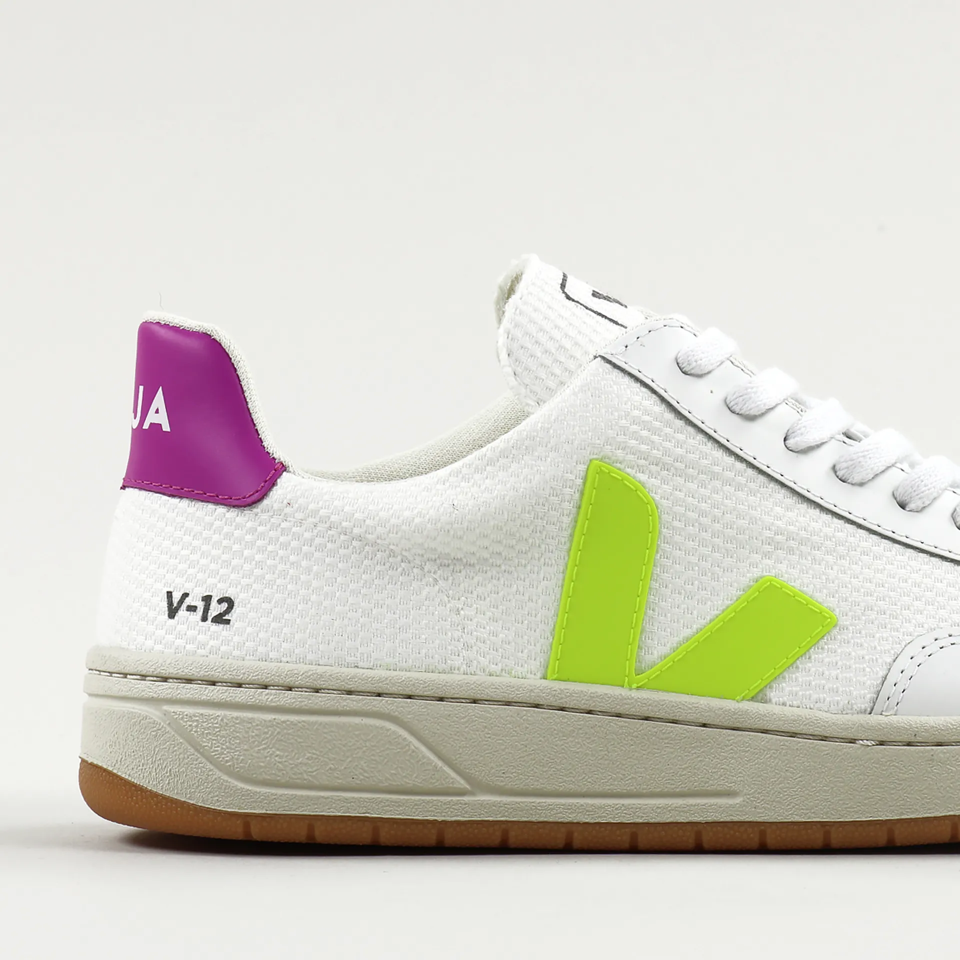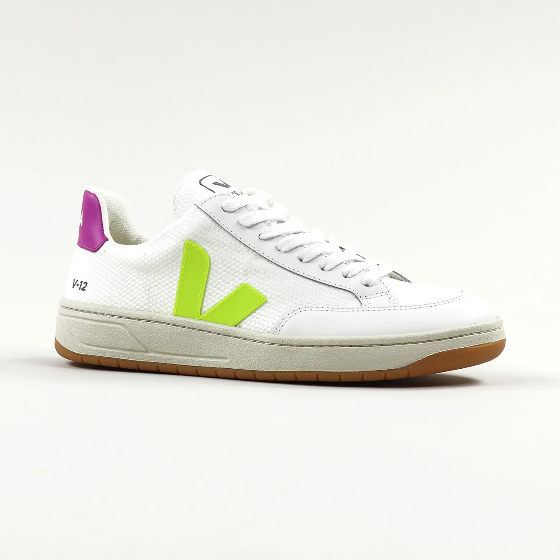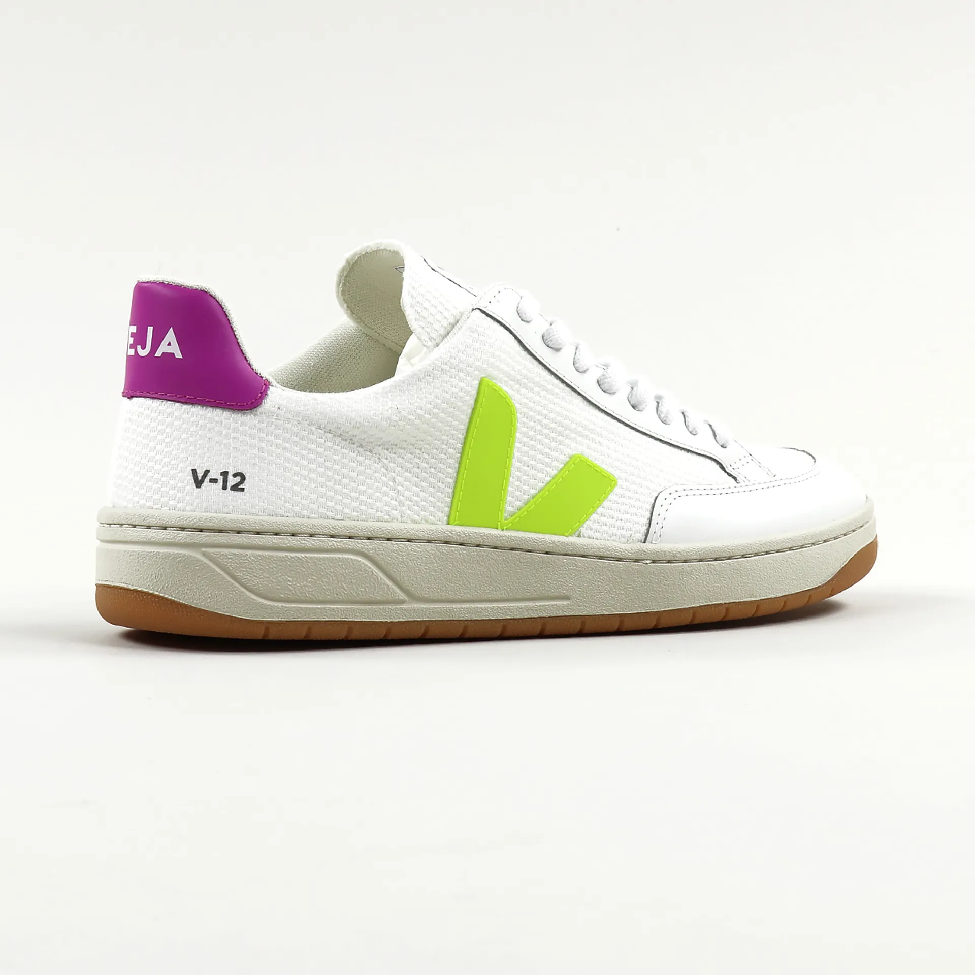 Veja V-12 B-Mesh Shoes White Yellow Fluo Ultraviolet