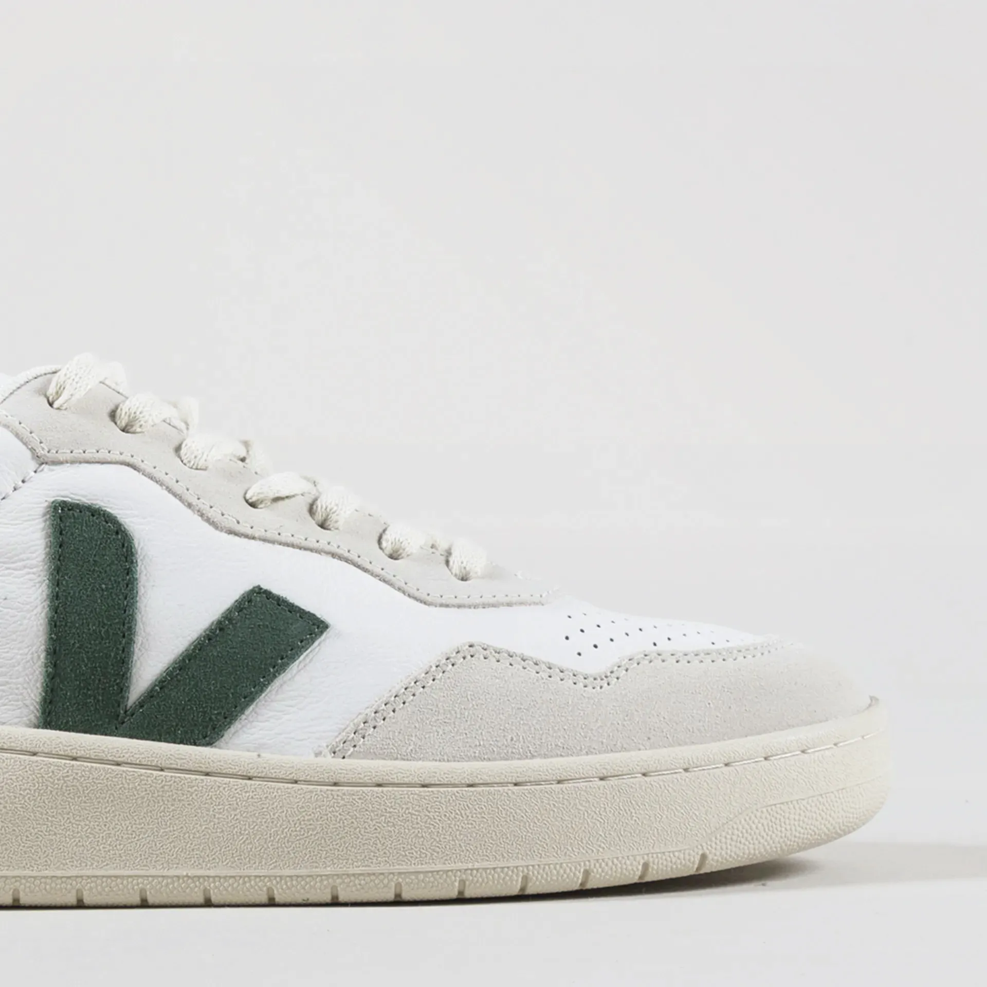 The V-90 shoes from Veja are made from an upper of O.T leather, with a recycled polyester lining and an outsole made from a blend of Amazonian and recycled rubber.It has ample branding with rubber V logos to the sides, a print to the heel and a debossed patch to the tongue