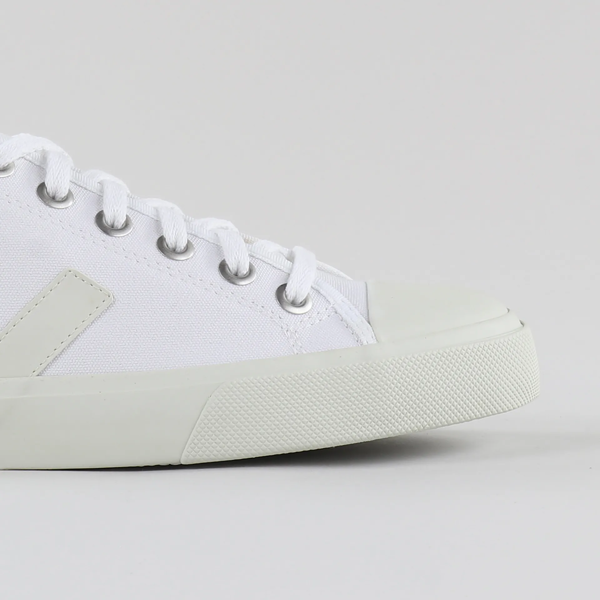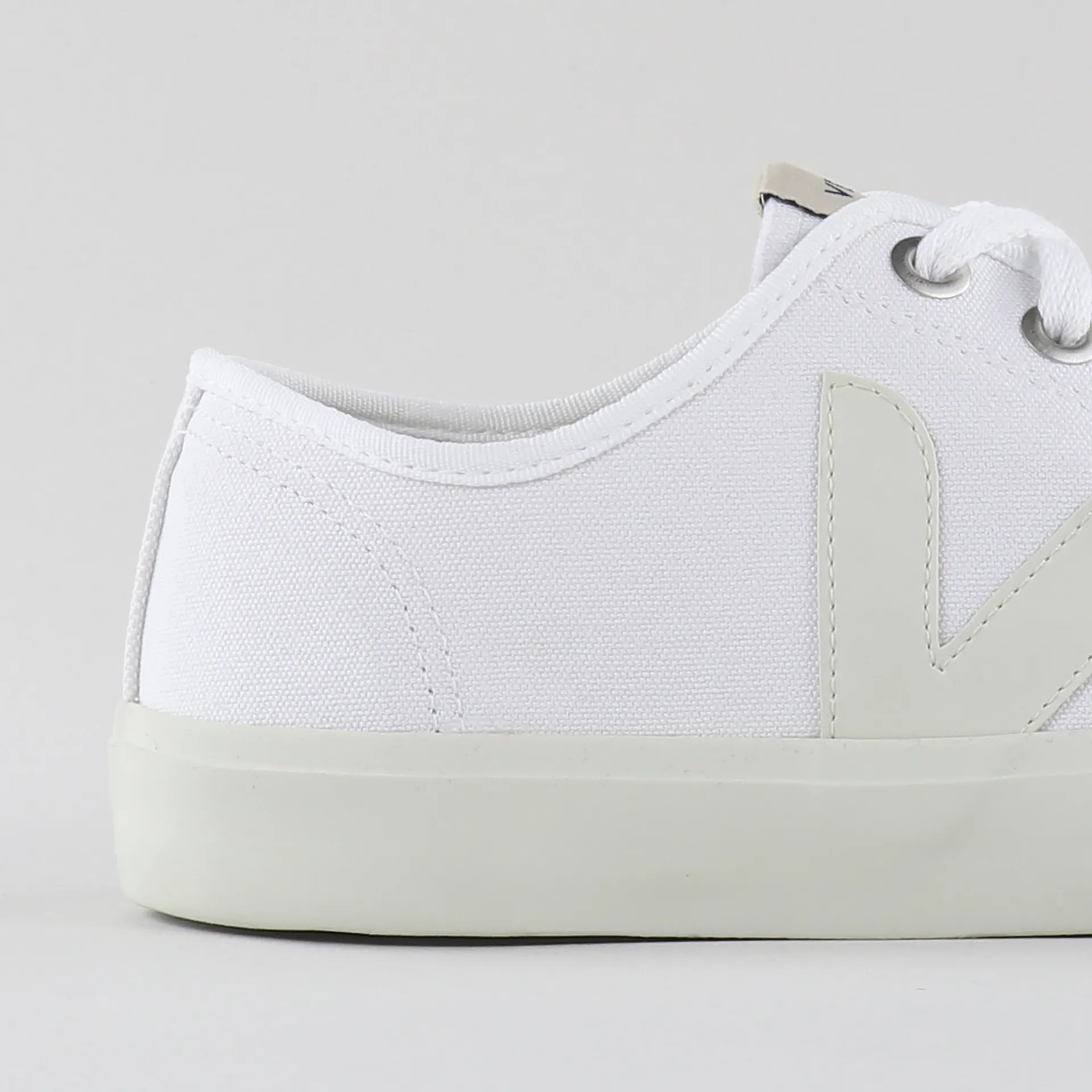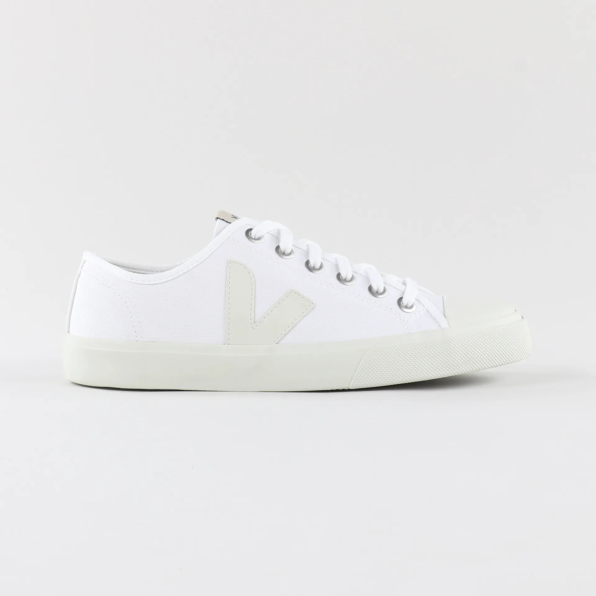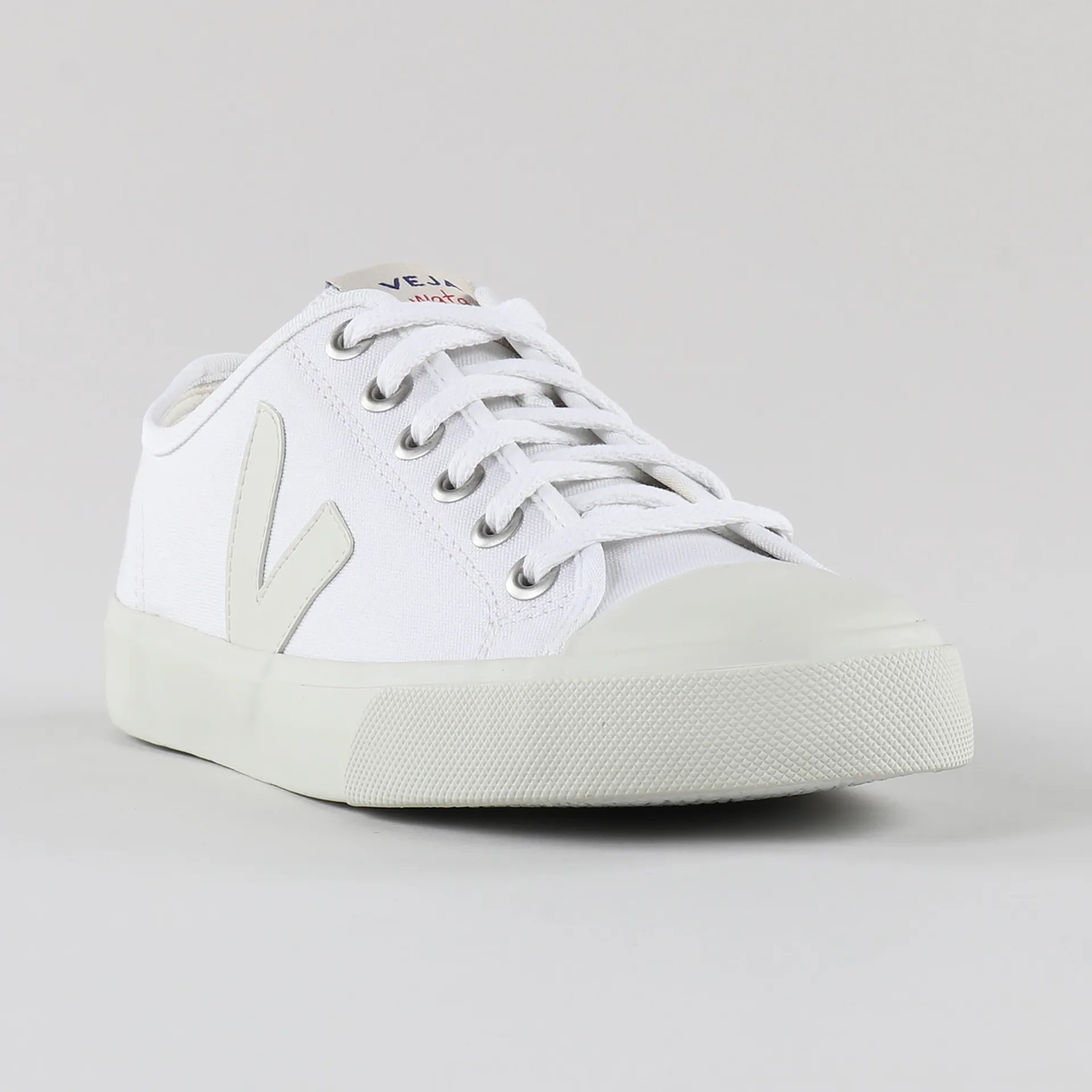 A pair of completely ecological, vegan and sweet-styled canvas sneakers from Paris' Veja. Made from a 100% organic cotton canvas and a sole made from wild Amazonian rubber, and made in Brazil.
