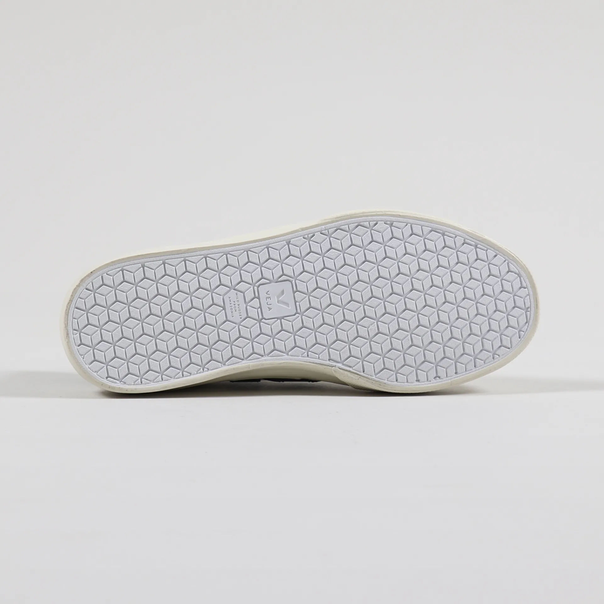 A classic tennis style shoe with a leather upper and rubber "V" logos. The chrome free leather reduces toxic waste water which benefits the environment. Contrasting heel leather with printed brand logo and logo printed to the slightly padded tongue.