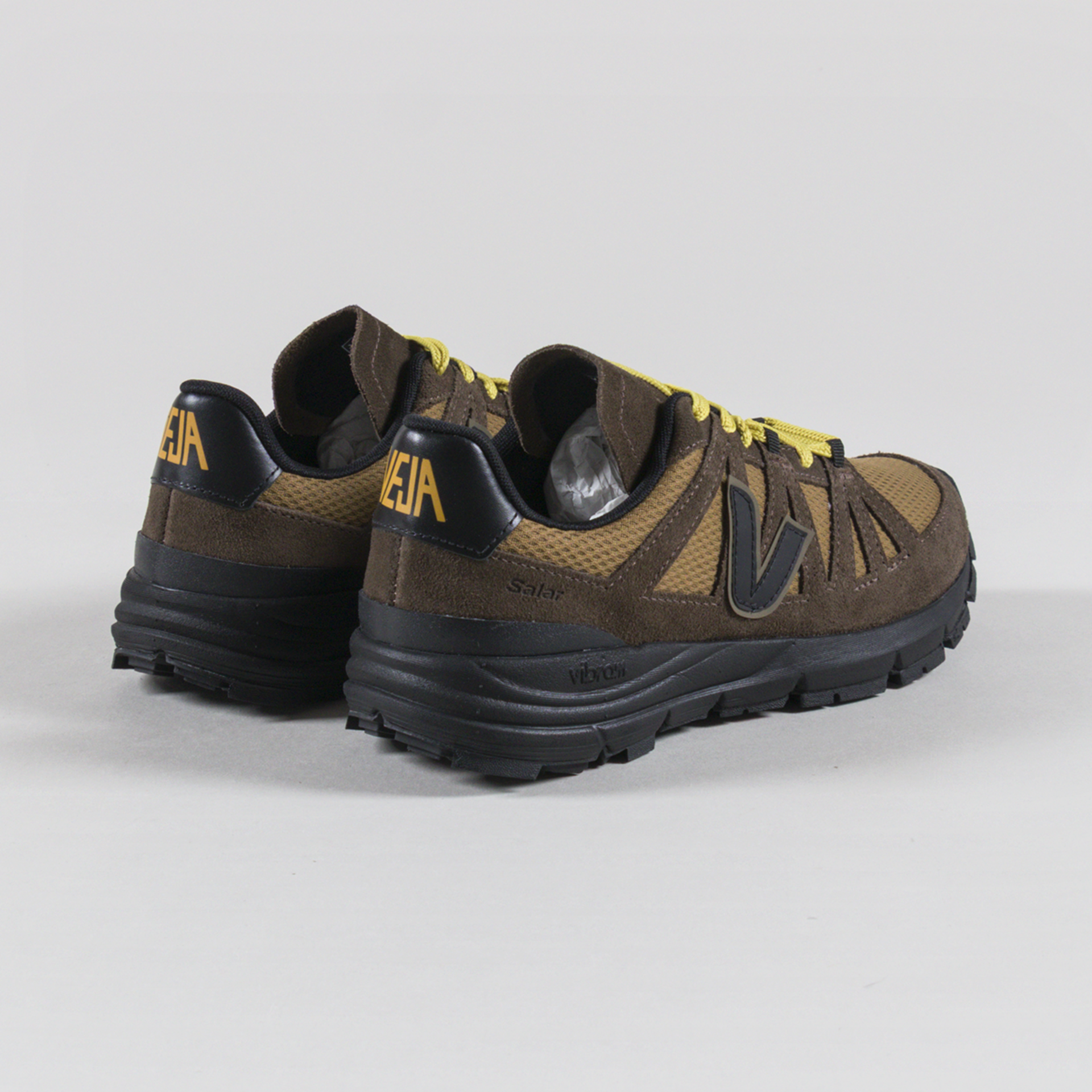 The Salar Shoes from Veja are constructed with Alveomesh uppers, a technical fabric made out of recycled polyester for breathability, flexibilty and lightweight durability. This silhouette features a Vibram sole, co-developed with Veja. It combines eco-friendly materials, such as Amazonian rubber and sugarcane-based EVA, with Vibram's cutting-edge technology. They have suede overlays throughout the uppers, a lightly padded tongue and collar, with leather detailing at the heel and classic rubber V logos.