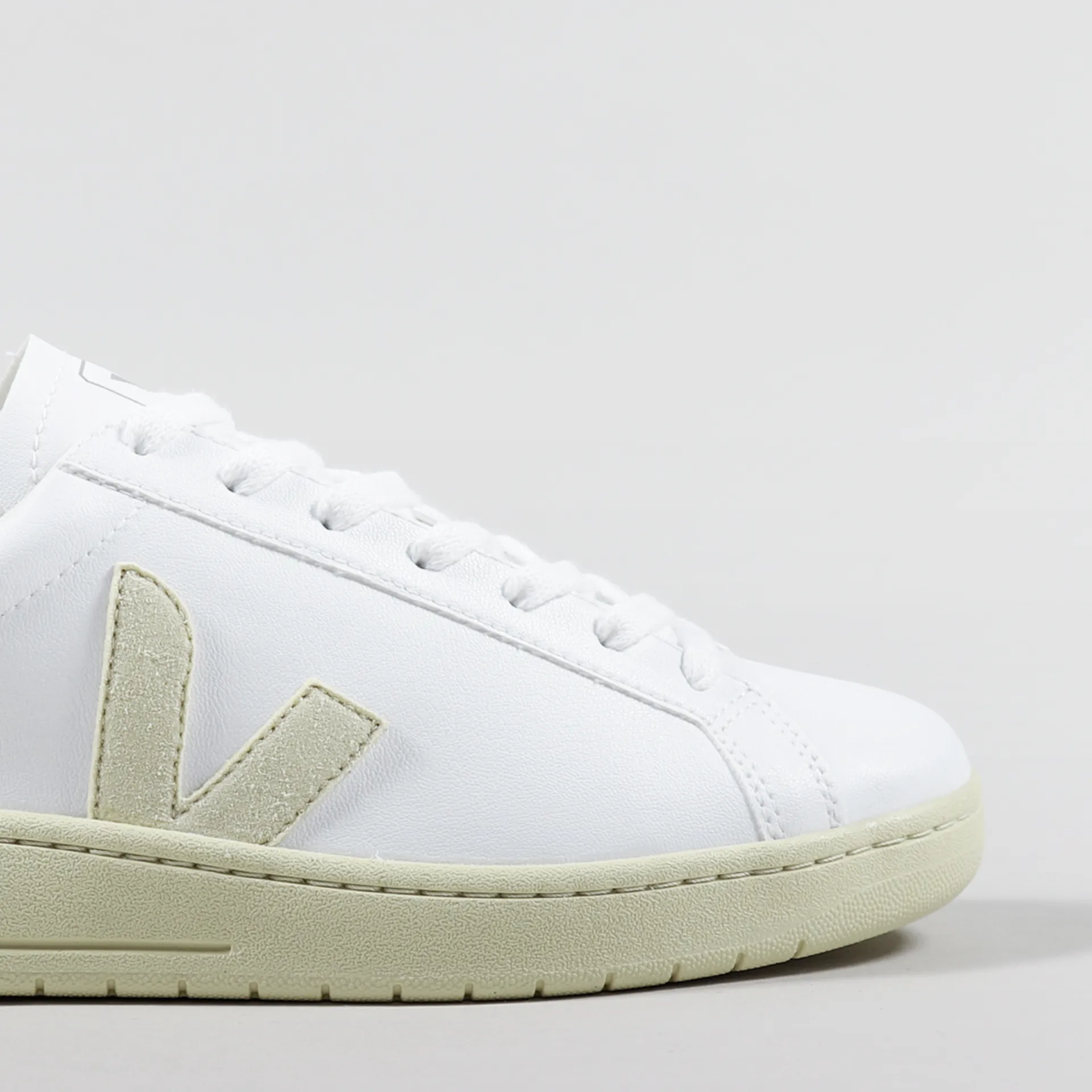 A pair of women's trainers from France's Veja Sneakers, made from a vegan leather of CRW, which is an organic cotton canvas coated with a durable PU and corn resin. The lining is made from a blend of organic cotton and recycled polyester jersey, and the outsole is made from durable Amazonian rubber with a herringbone tread.