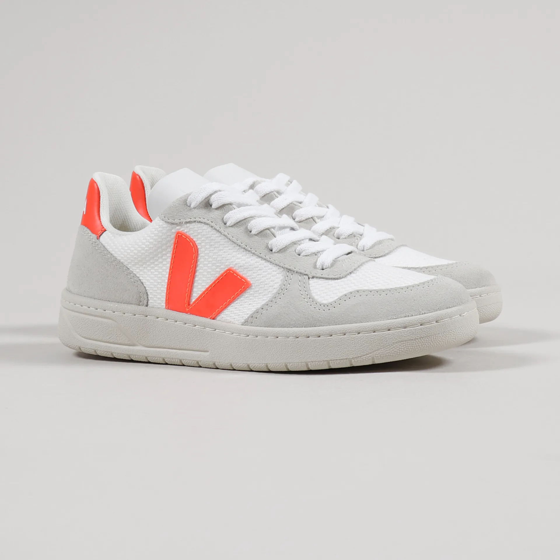 Veja Womens V-10 B-Mesh Shoes White Natural Orange Fluo