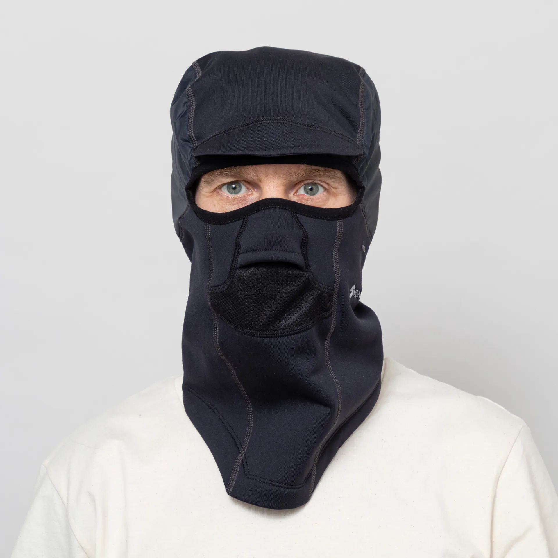 A balaclava from Montane, constructed with zoned Thermo Stretch fleece fabric and windproof PERTEX QUANTUM. Featuring a small raised peak, a clear view visor slit, enhanced nose ventilation and a mesh panel around the mouth. Finished with the classic Montane logo to the side.