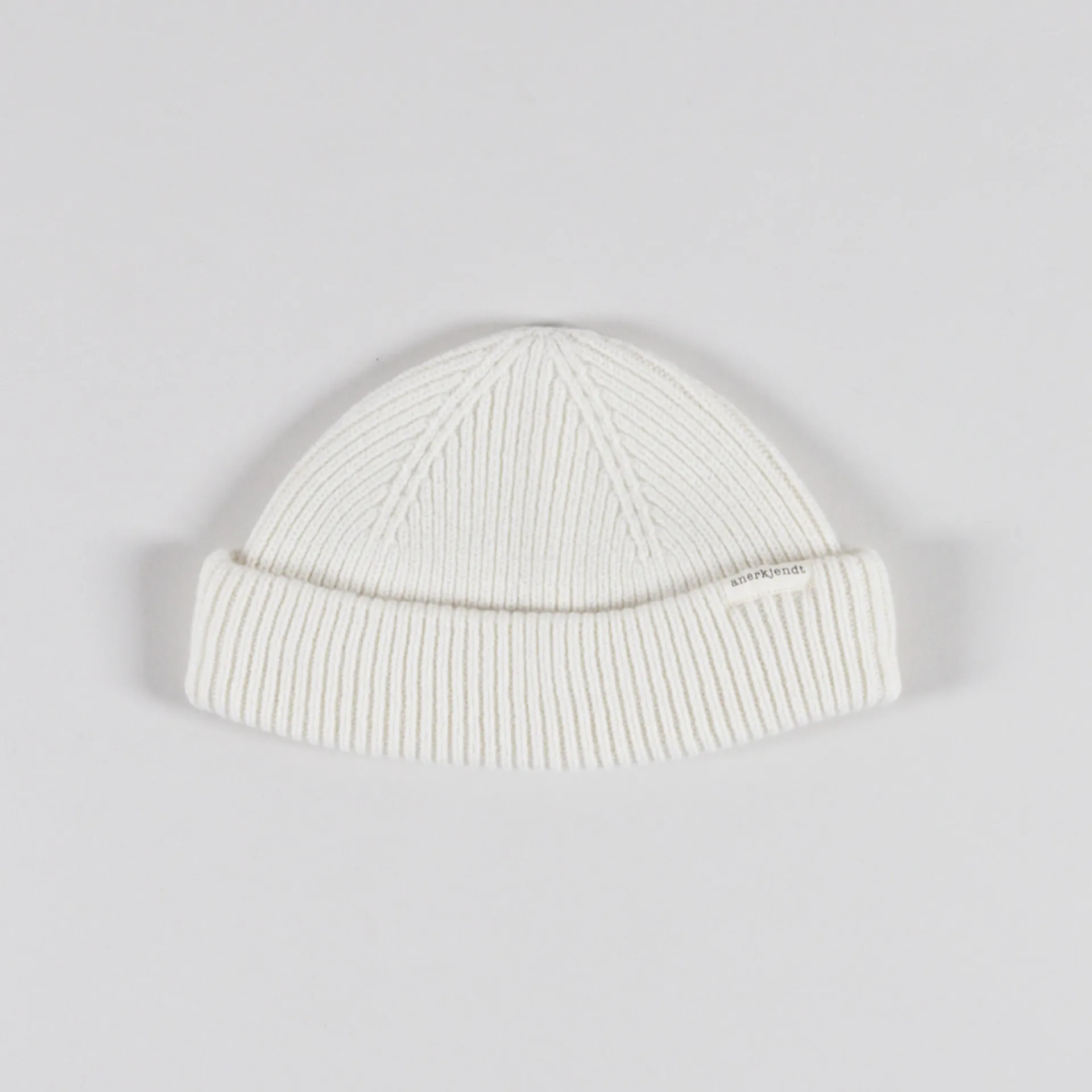 A knitted beanie from Anerkjendt, constructed from super soft Merino Wool. Finished with a turned-up cuff and a flag label.