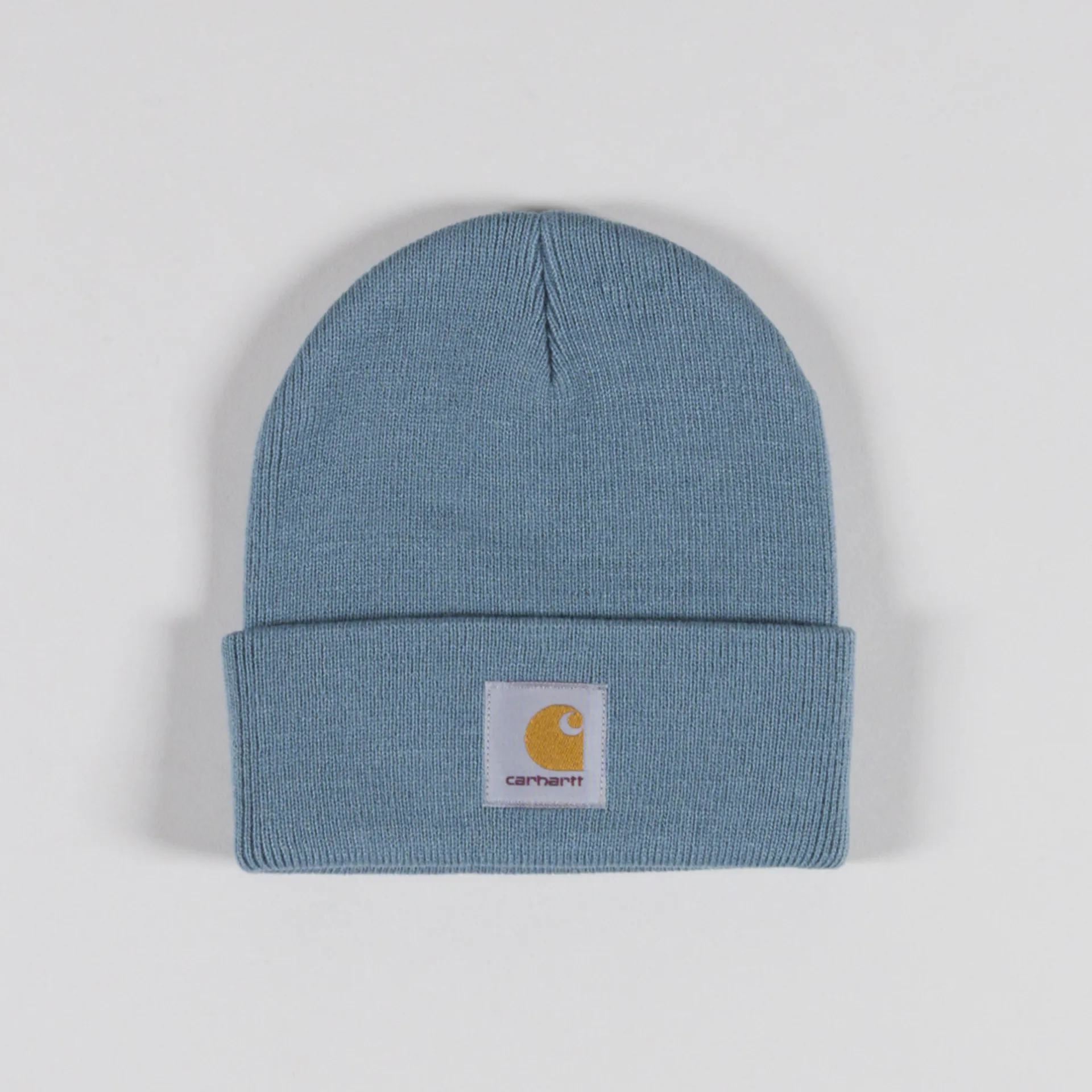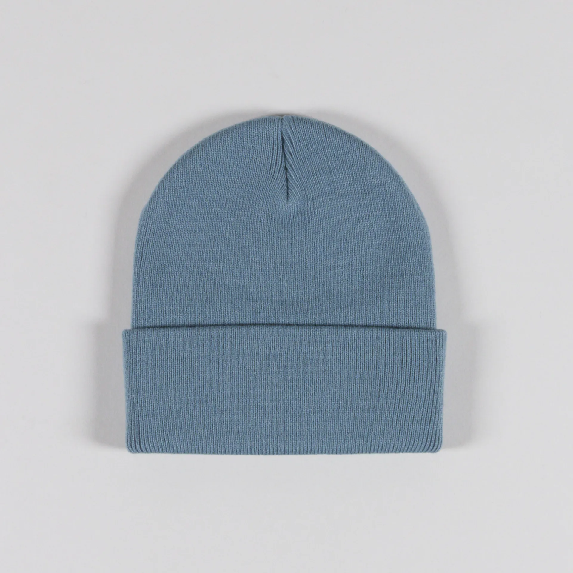 A beanie from Carhartt WIP made from a comfortable 100% acrylic ribbed knit with a turned cuff and a woven logo patch. This version is a little more low-profile.