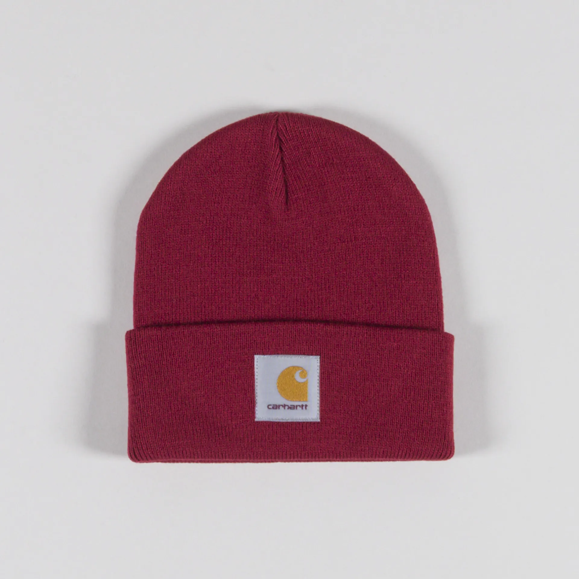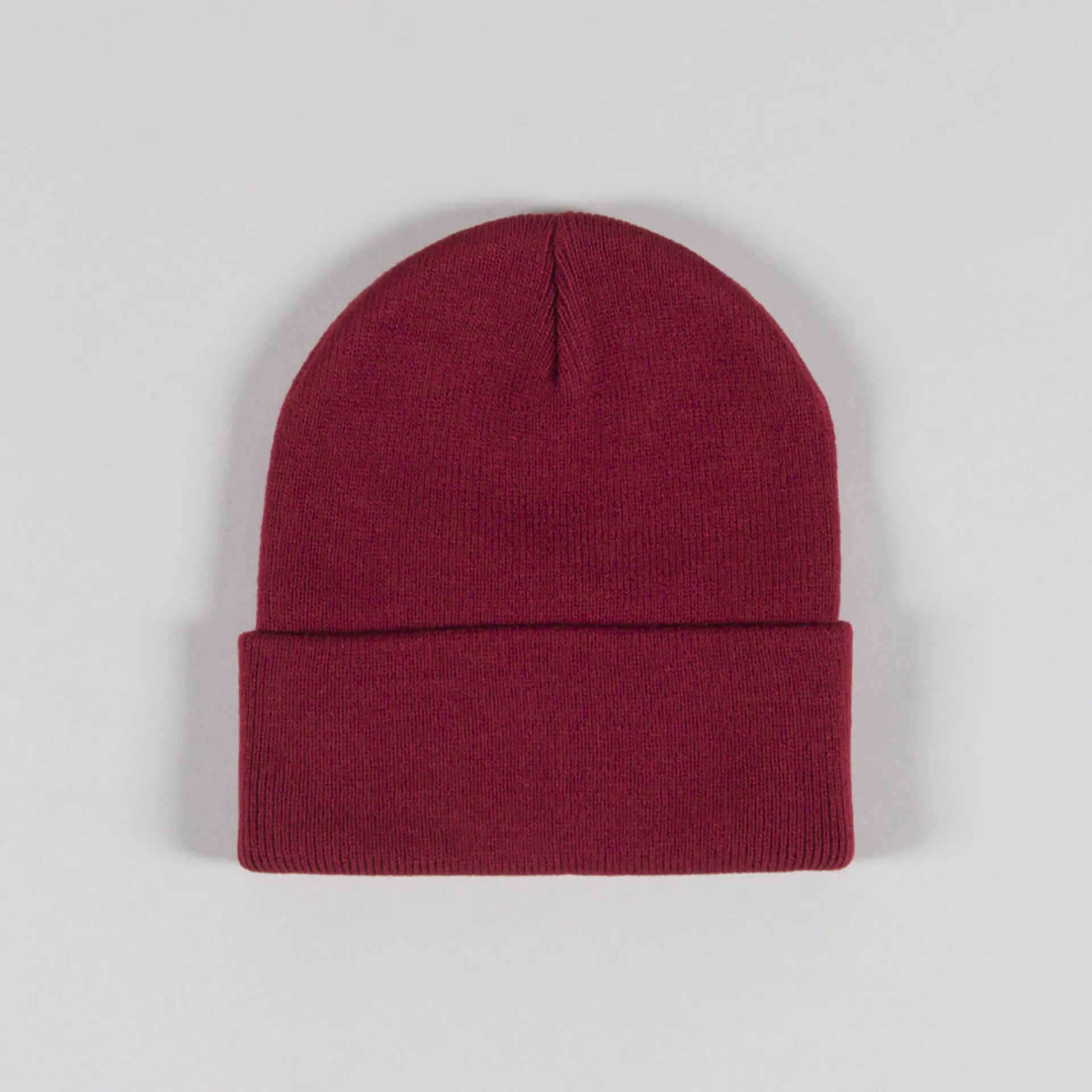 A beanie from Carhartt WIP made from a comfortable 100% acrylic ribbed knit with a turned cuff and a woven logo patch. This version is a little more low-profile.