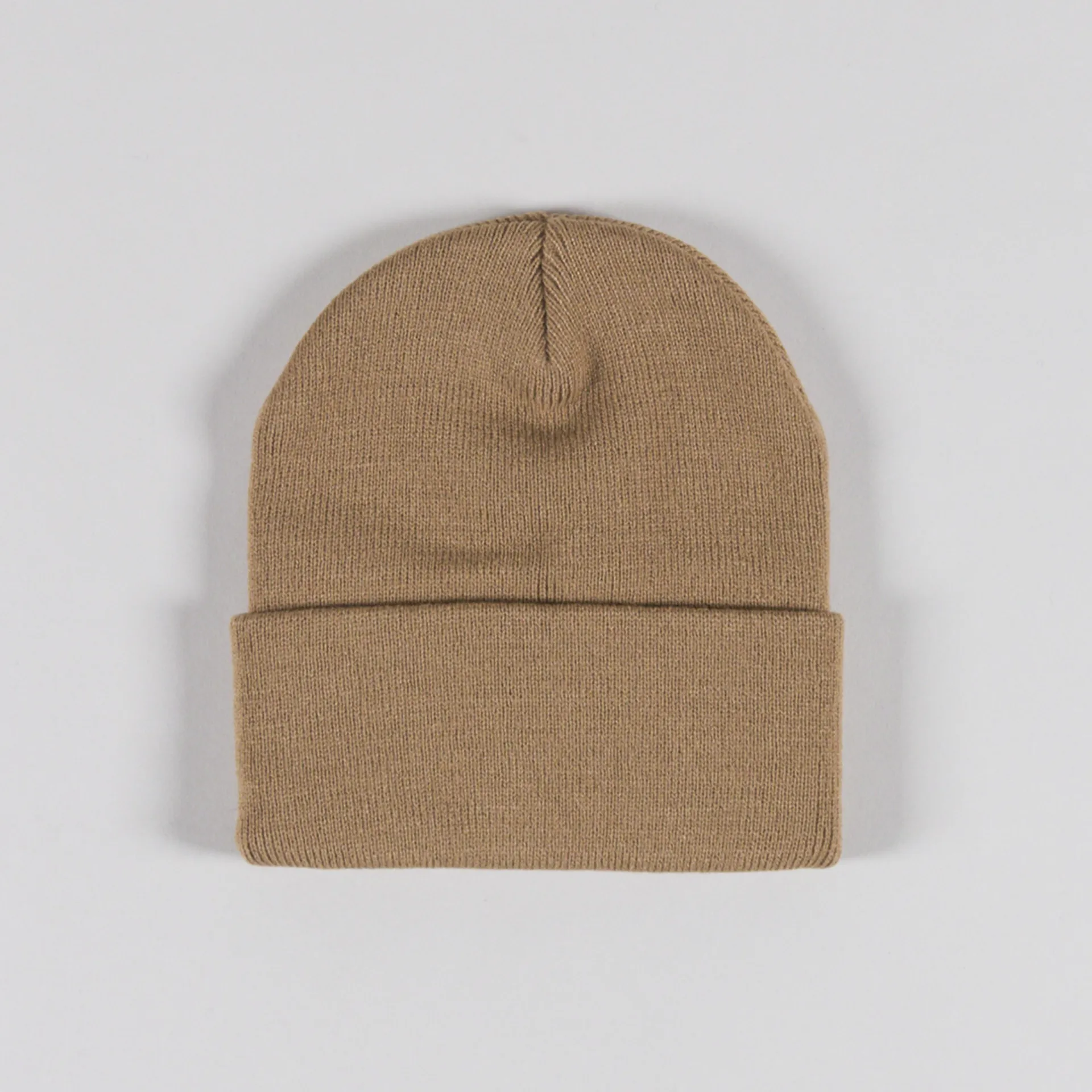 A knitted beanie from Carhartt WIP's womenswear collection, constructed from 100% acrylic with a turned-up cuff and a square label patch to the front.