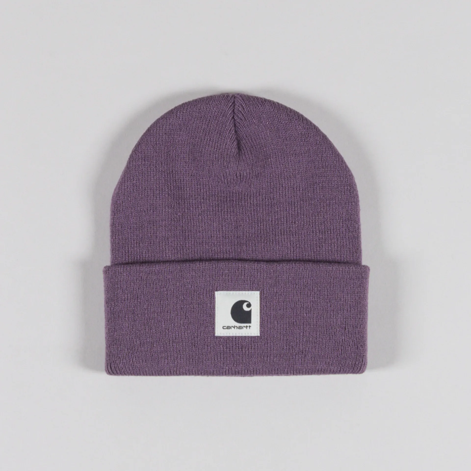 A knitted beanie from Carhartt WIP's womenswear collection, constructed from 100% acrylic with a turned-up cuff and a square label patch to the front.