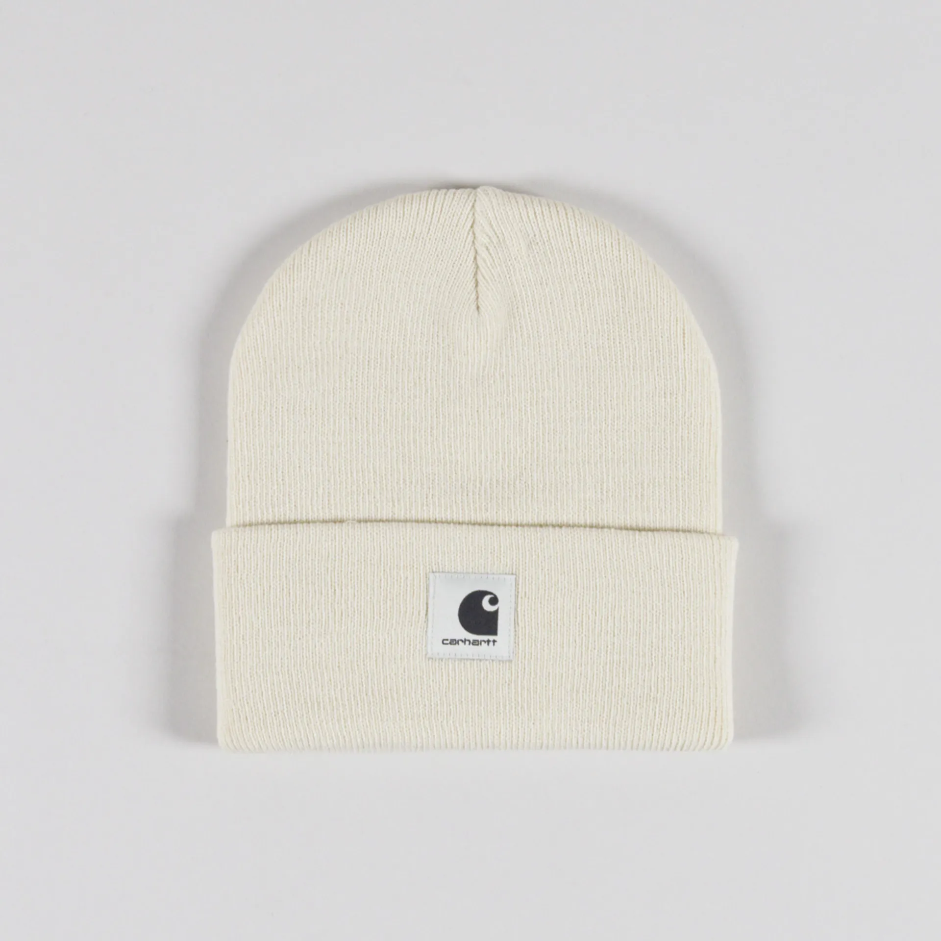 A knitted beanie from Carhartt WIP's womenswear collection, constructed from 100% acrylic with a turned-up cuff and a square label patch to the front.