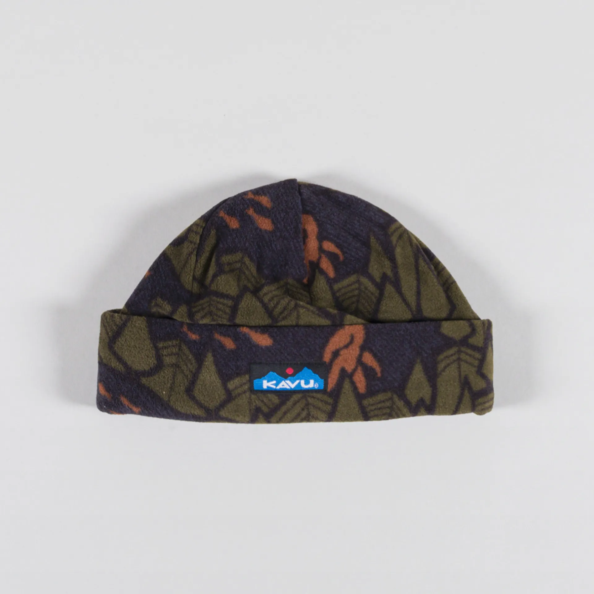 The North Inlet Beanie from Kavu's womenswear collection has been constructed from soft 100% recycled polyester fleece with an all-over print, turned-up cuff and finished with the classic Kavu woven logo to the front.