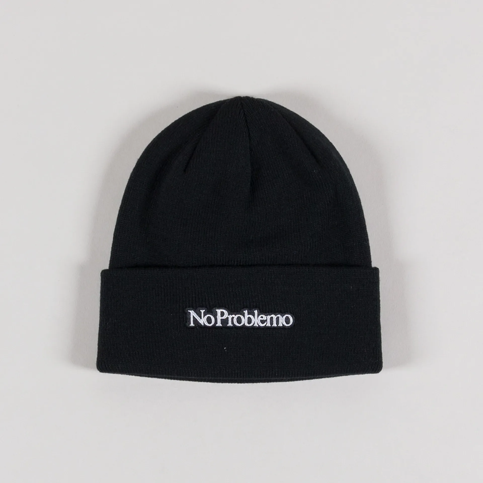 The Mini Problemo Beanie has been constructed from soft 100% acrylic knit, featuring a turned-up cuff and embroidered patch to the front.