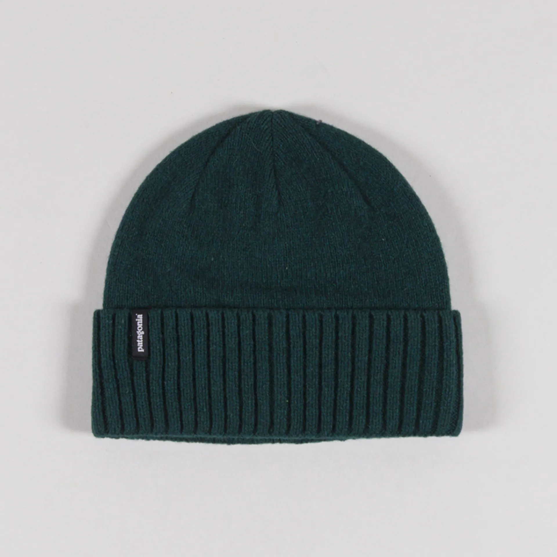 A recycled winter beanie from Patagonia made from 70% wool and 25% nylon featuring one of their many logos, embroidered to the rolled n' ribbed cuff.