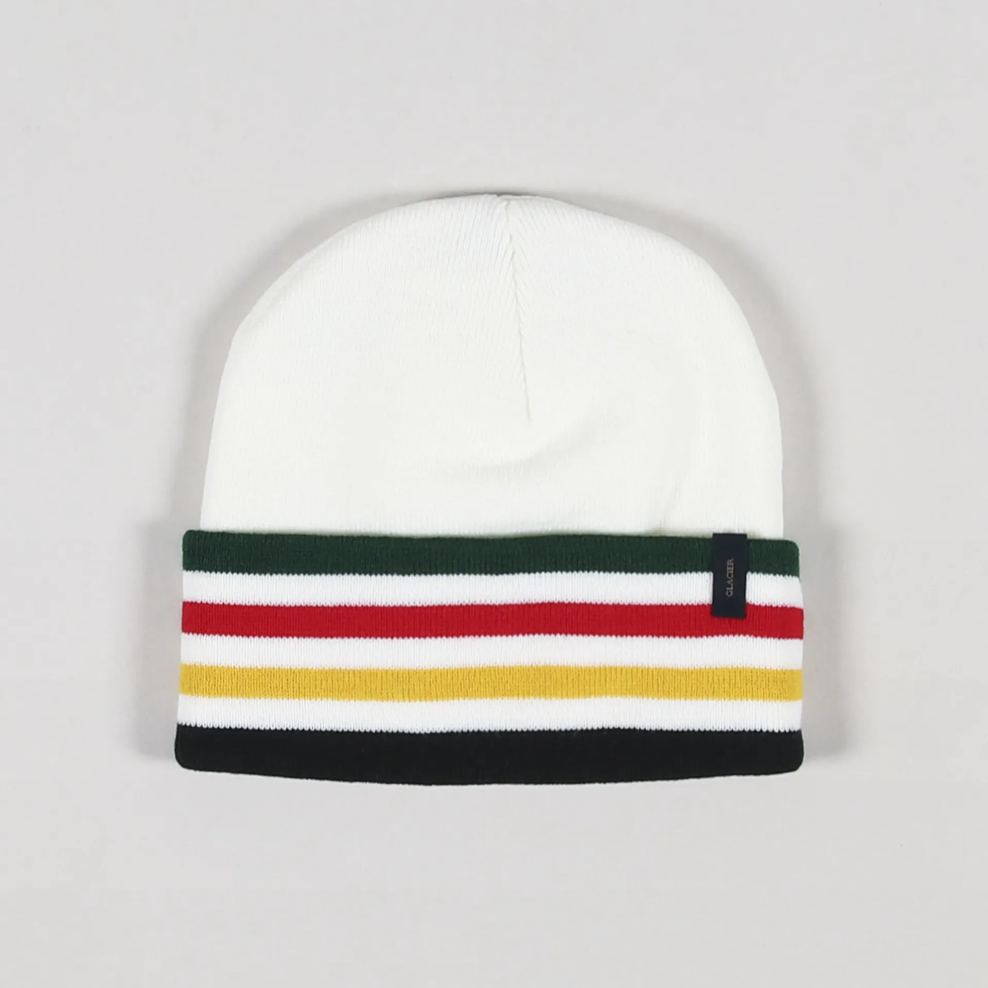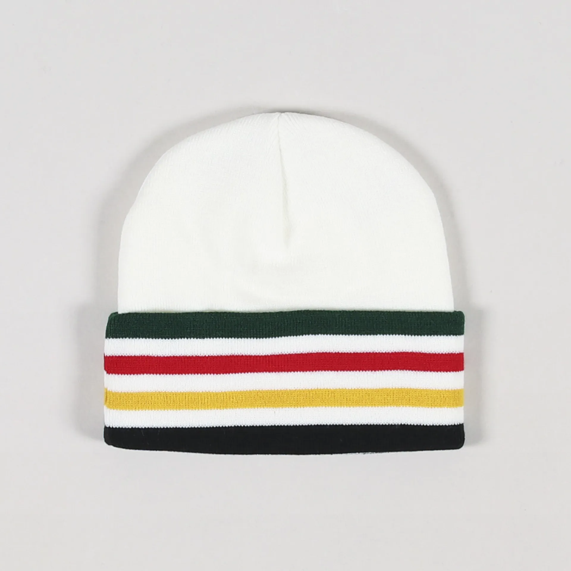 A beanie from Pendleton made from a super comfortable and warm, chunky acrylic with a ribbed design, a turned cuff and a National Park Stripe along with a woven logo tag.