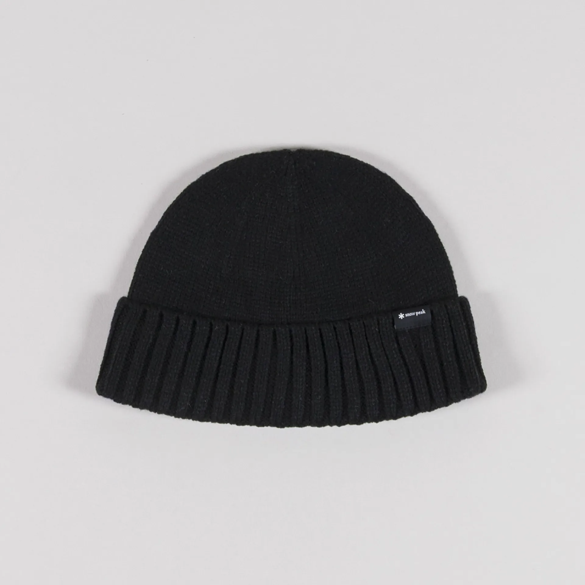 A knitted beanie from Snow Peak, crafted from soft 100% acrylic, with a turned-up cuff and woven logo.
