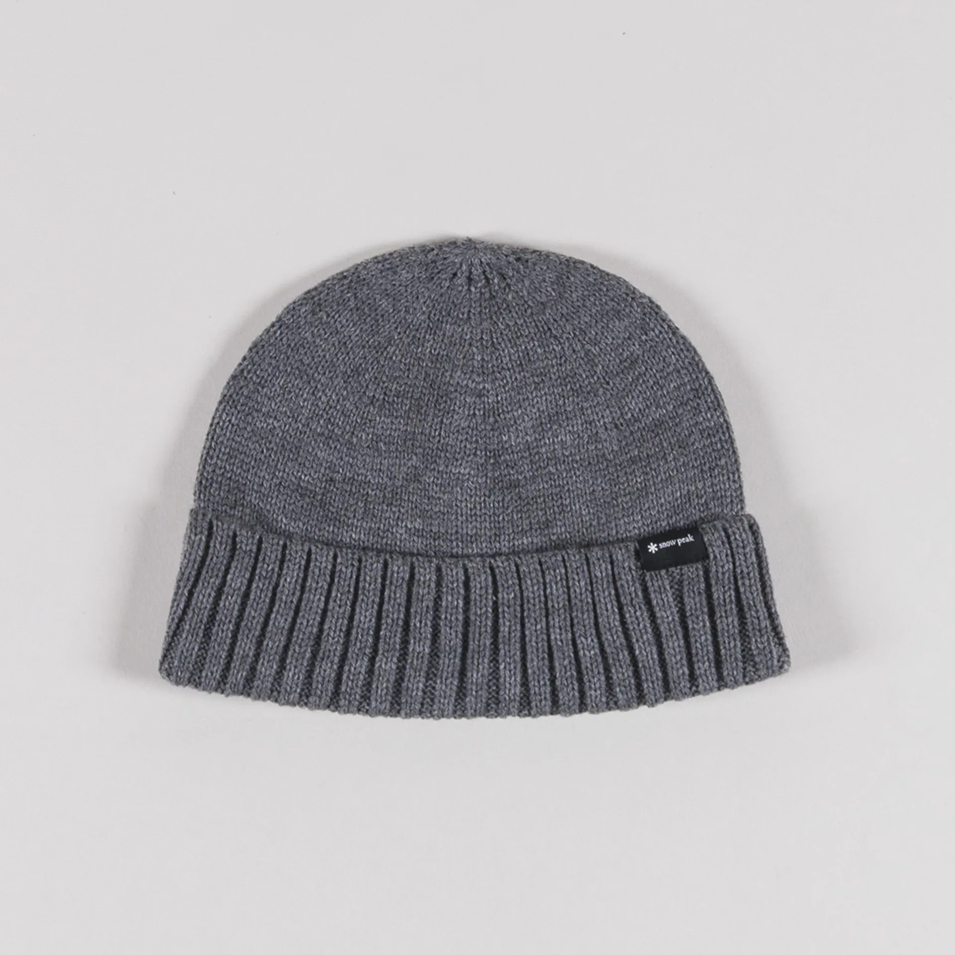 A knitted beanie from Snow Peak, crafted from soft 100% acrylic, with a turned-up cuff and woven logo.