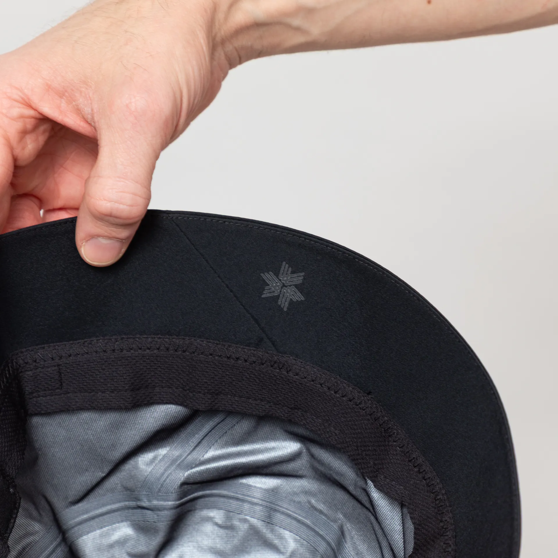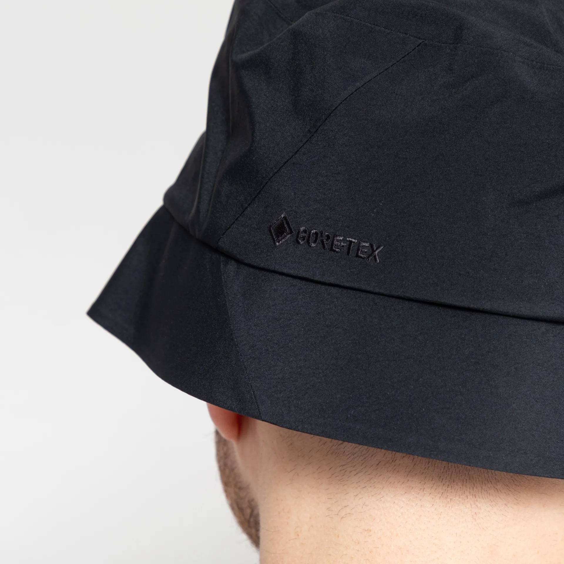 A waterproof bucket hat from Goldwin, constructed with GORE-TEX 3L and lined with GORE C Knit backer technology.