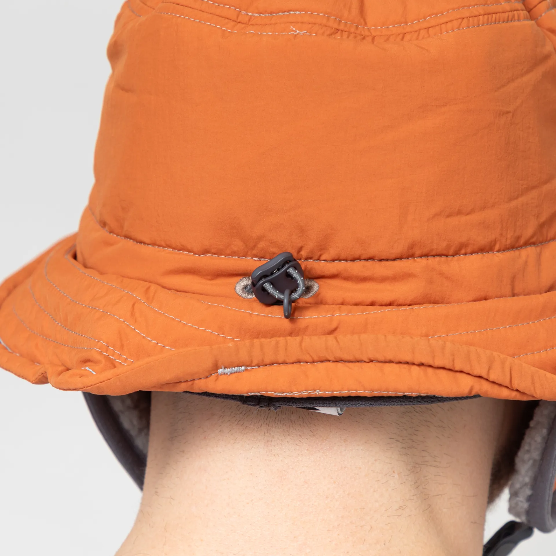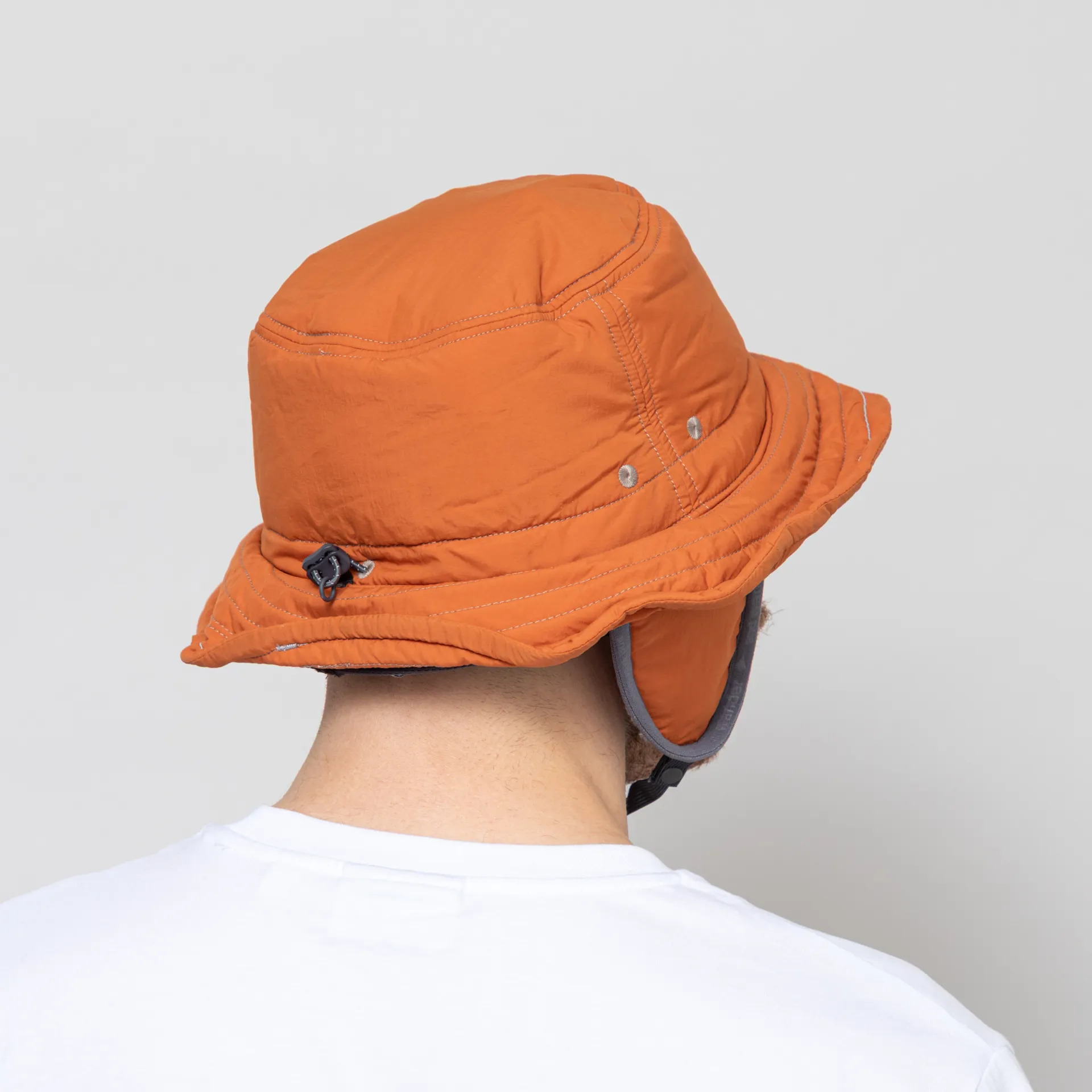A padded bucket hat from Gramicci & And Wander, constructed from 100% nylon with a water-repellent finish for protection against light rainfall. Featuring a fleece lining for extra warmth, ear flaps, a detachable chin strap and finished with a special collab logo to the front.