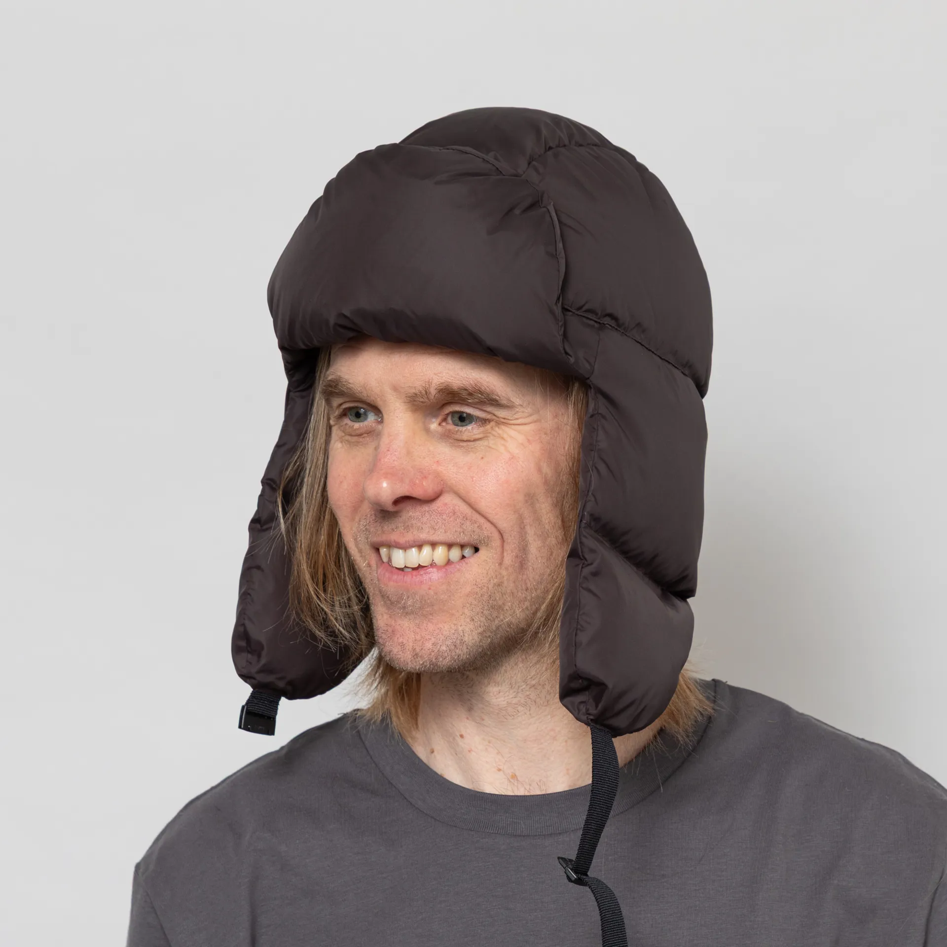 A lightweight, insulated hat from 66 North, constructed from 100% recycled polyester with high-quality 700 fill-power recycled down. This design fully covers the head and ears, with an adjustable webbed strap to the front and a 66 North logo to the back.