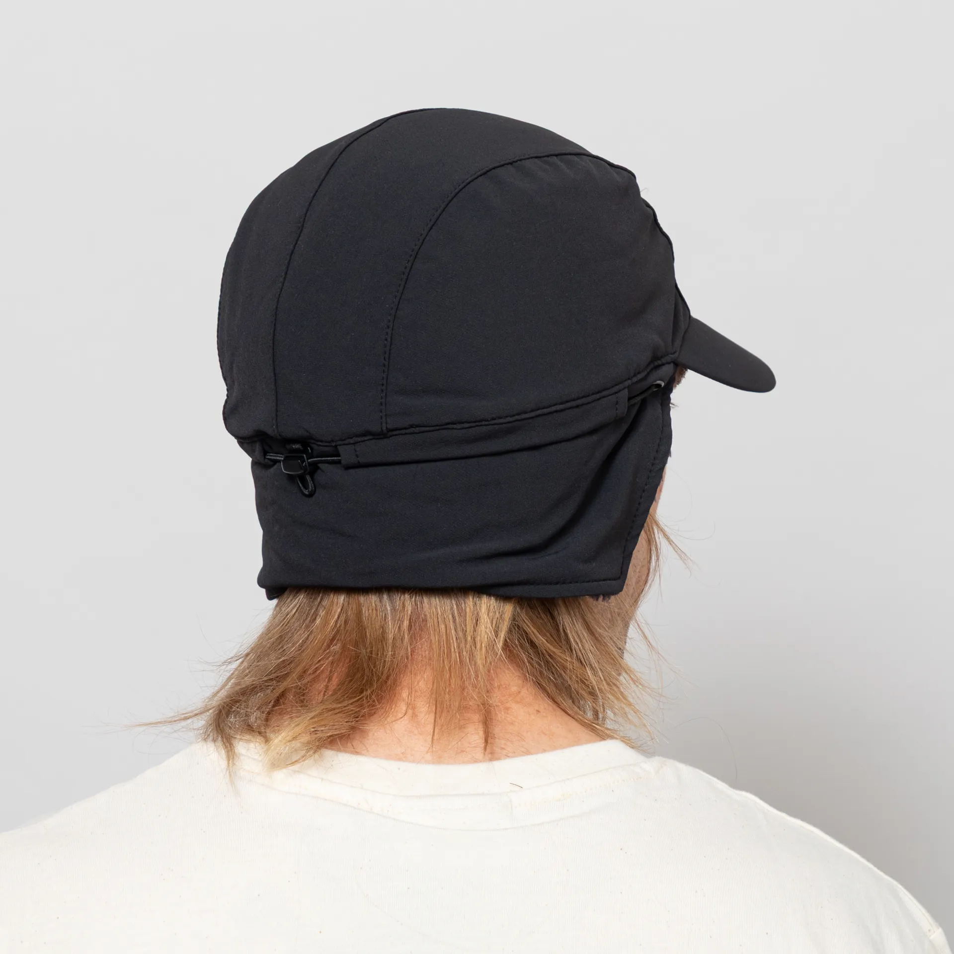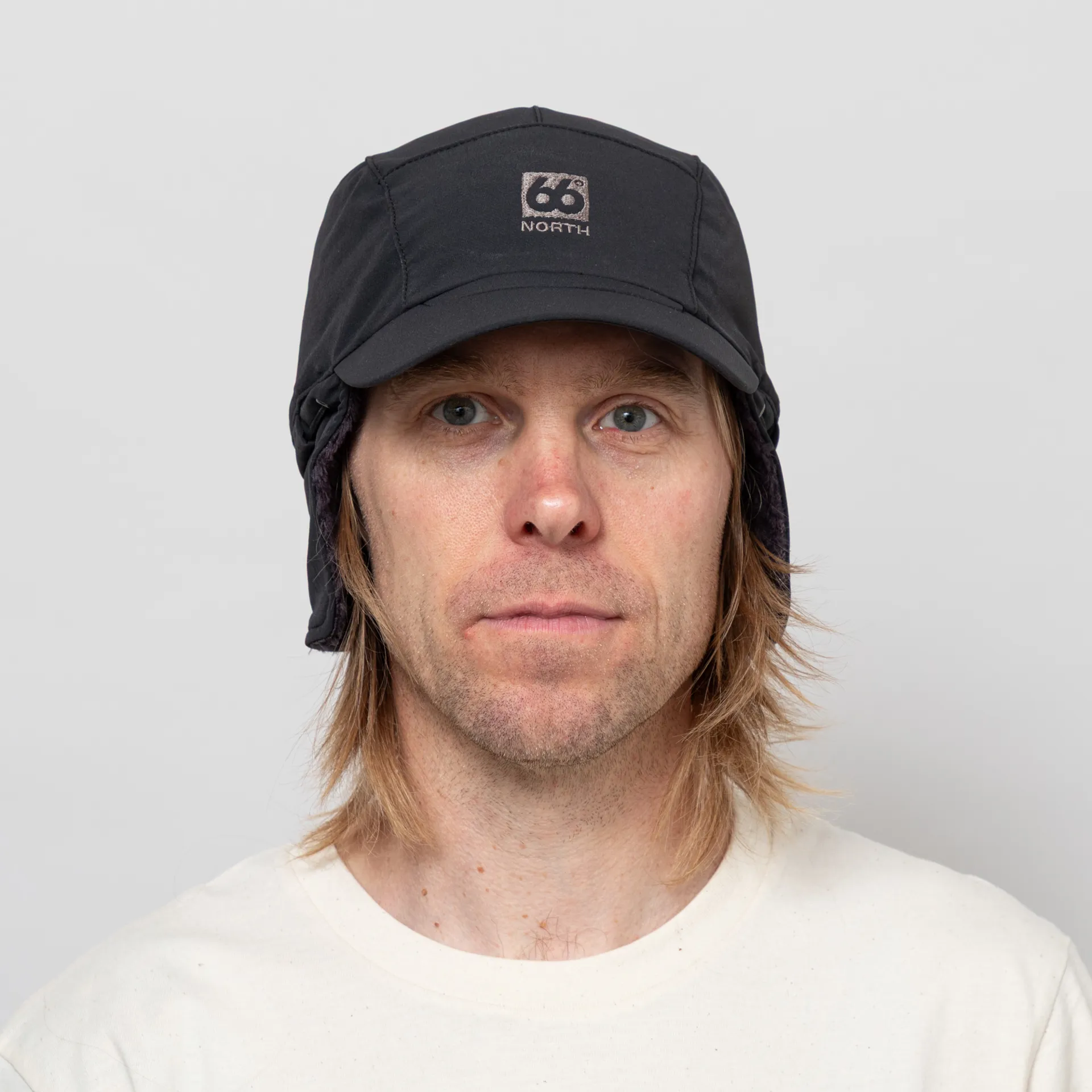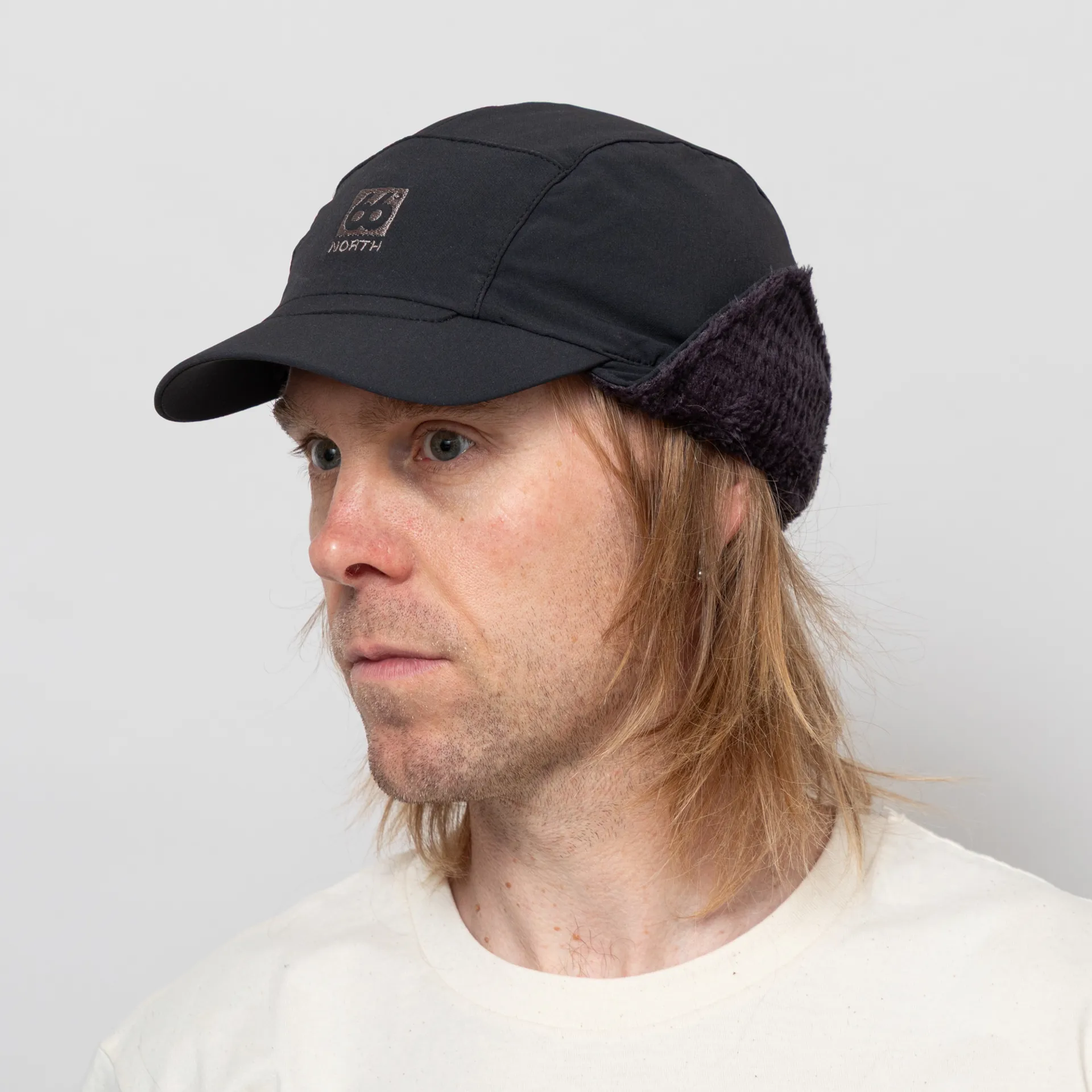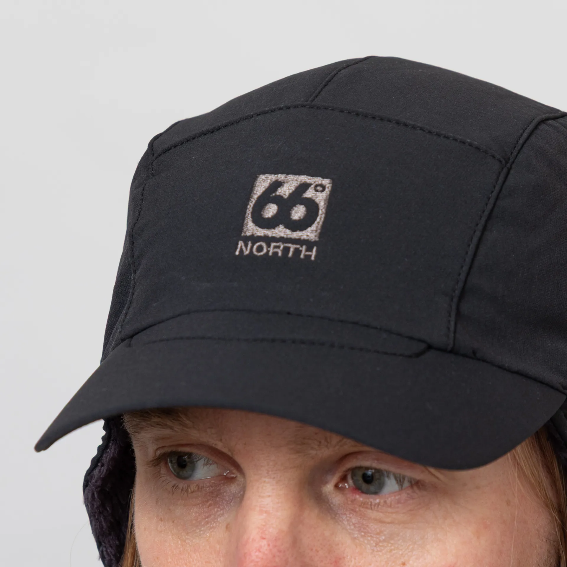 An insulated, windproof cap from 66 North, constructed with a four-way stretch shell and lined with Polartec Alpha. It features ear flaps, a flexible curved brim and a drawcord to adjust the fit. Finished with a tonal embroidered logo to the front.