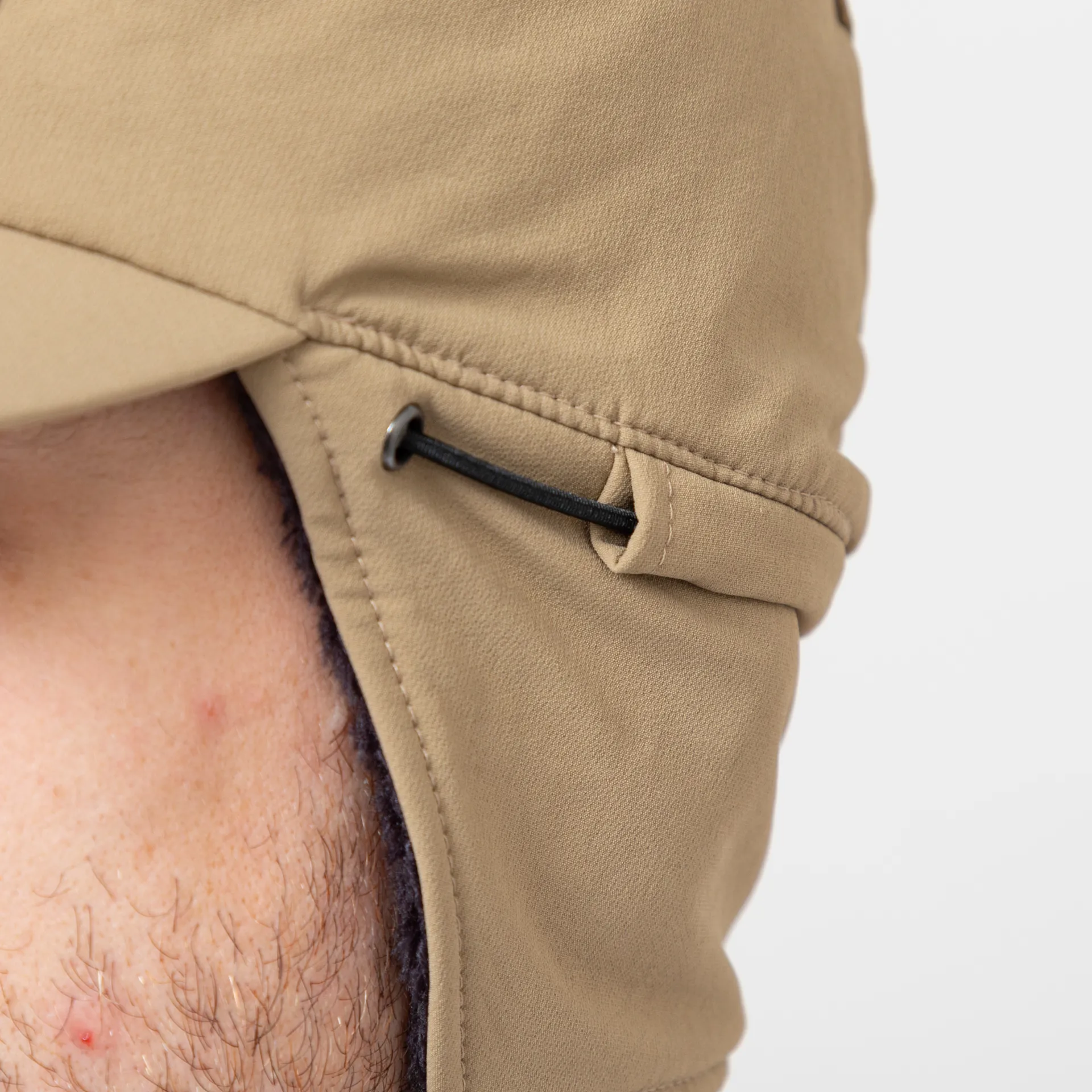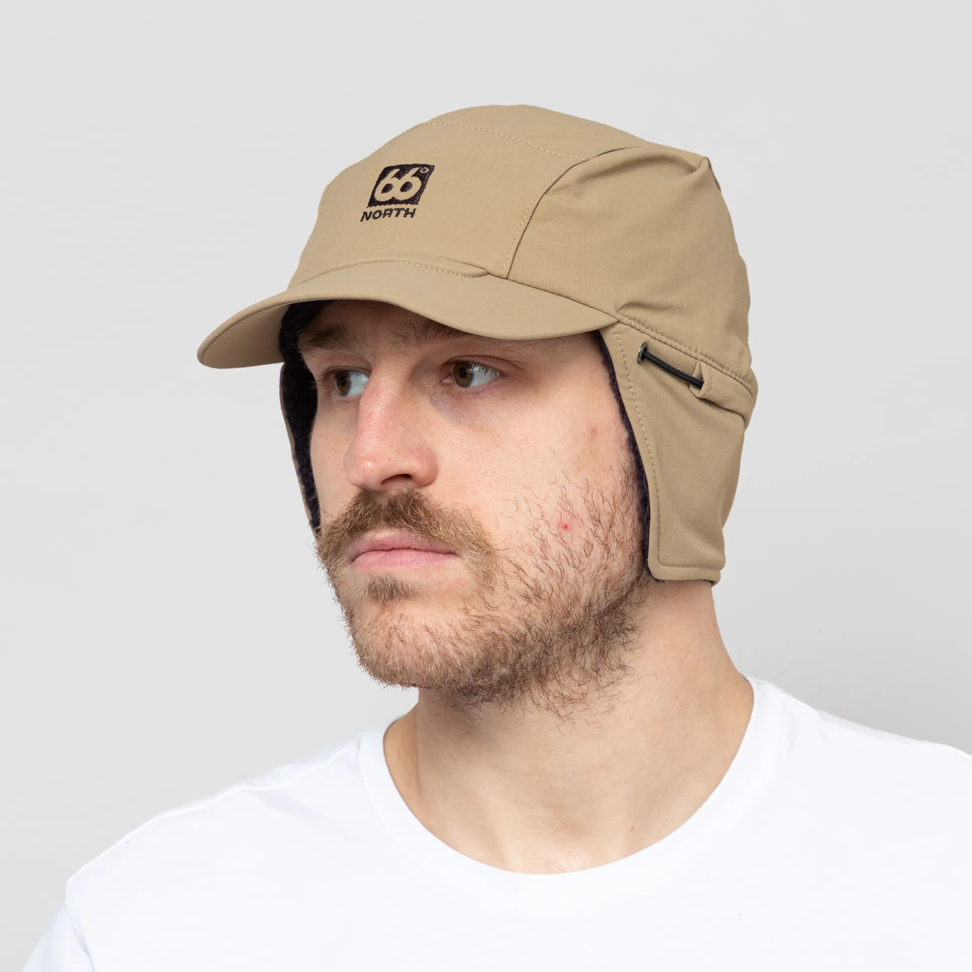 An insulated, windproof cap from 66 North, constructed with a four-way stretch shell and lined with Polartec Alpha. It features ear flaps, a flexible curved brim and a drawcord to adjust the fit. Finished with a tonal embroidered logo to the front.
