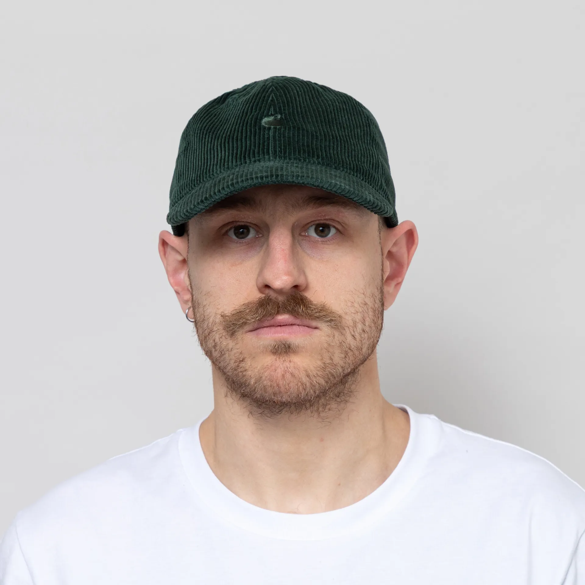 A cap from Carhartt WIP, made from a classic cotton corduroy fabric with nylon lining. It has an adjustable strap with an embossed clip, and an embroidered logo to the front.