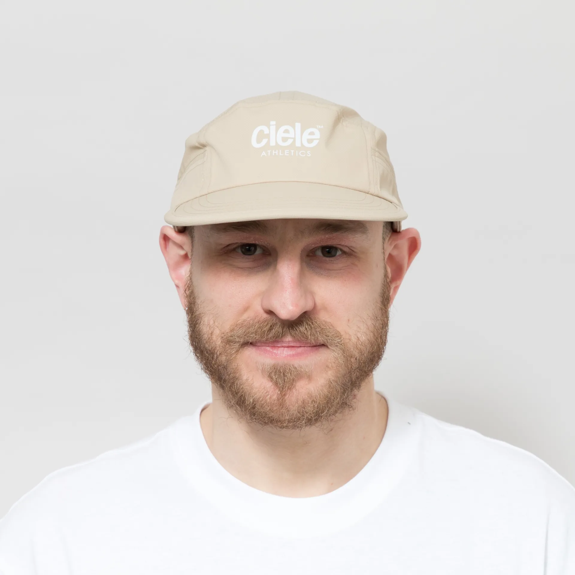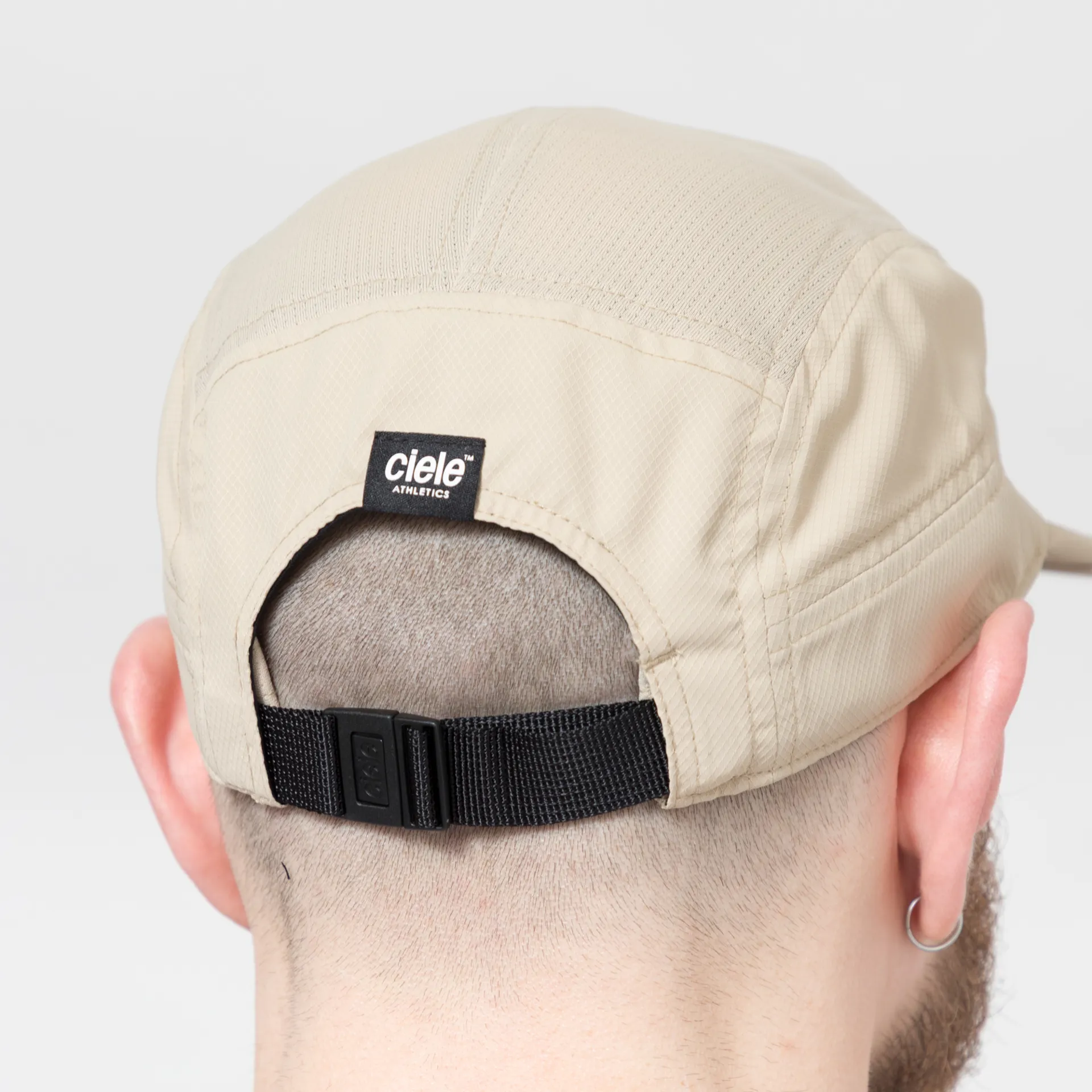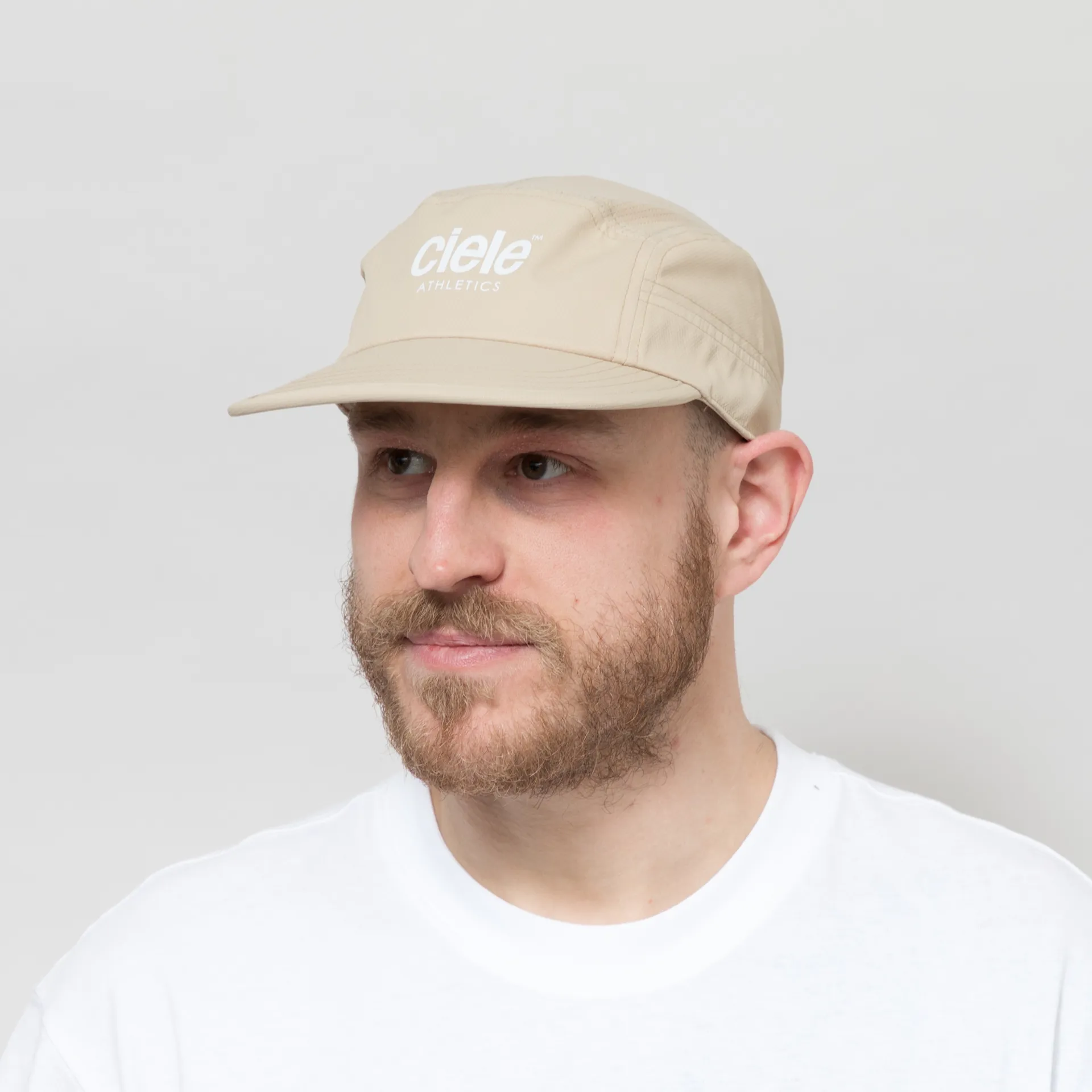 This running cap from Ciele is constructed in a five-panel design with COOLmatic and PLUS FLOWmesh integrated into the top panels for targeted ventilation, with the front and sides constructed with Xstop ripstop for lightweight durability. It features a packable SOFTflat brim, adjustable strap at the back and finished with a reflective Ciele Athletics logo to the front.