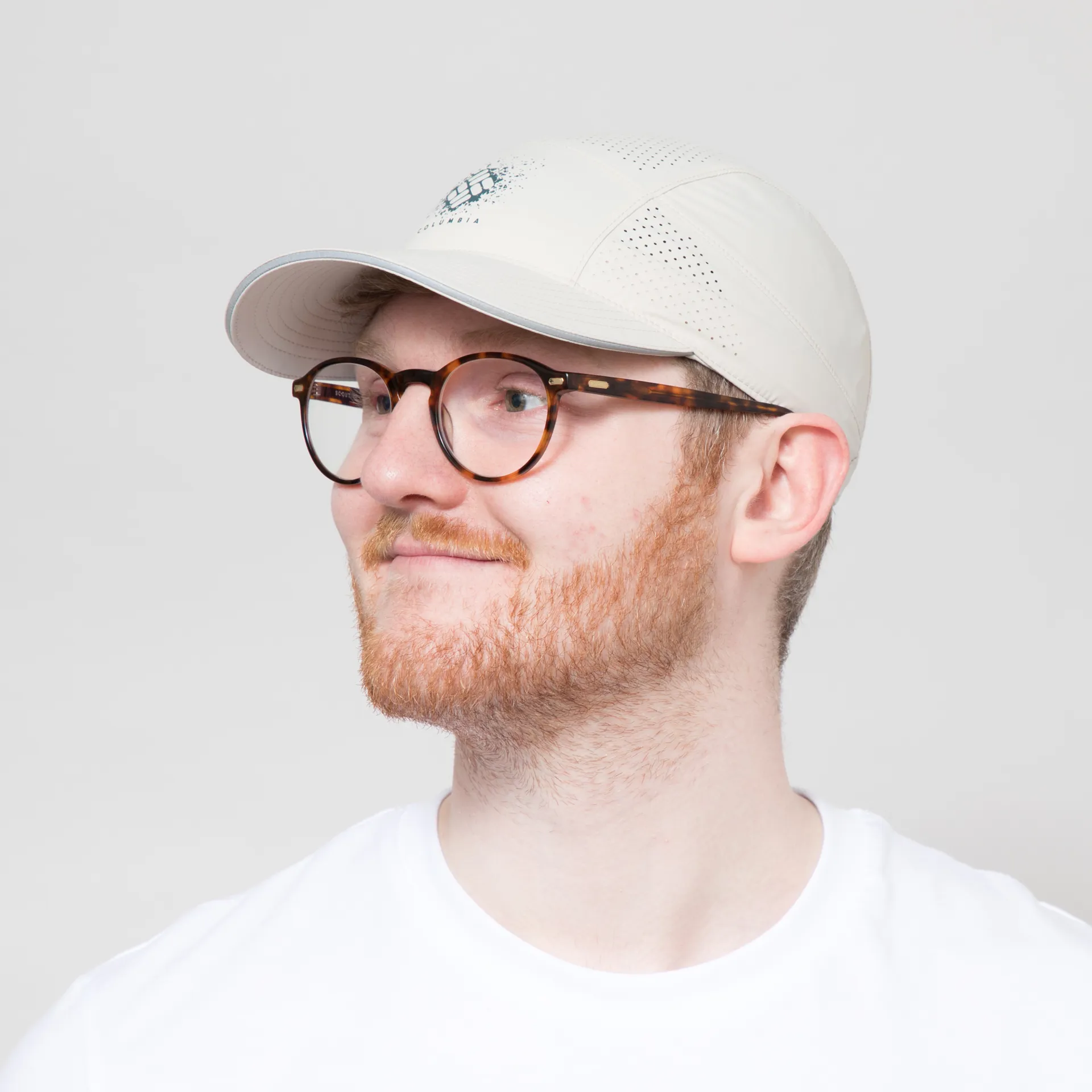 A technical cap from Columbia, constructed with an Omni-Freeze Zero sweat-activated cooling sweatband and Omni-Wick moisture management.