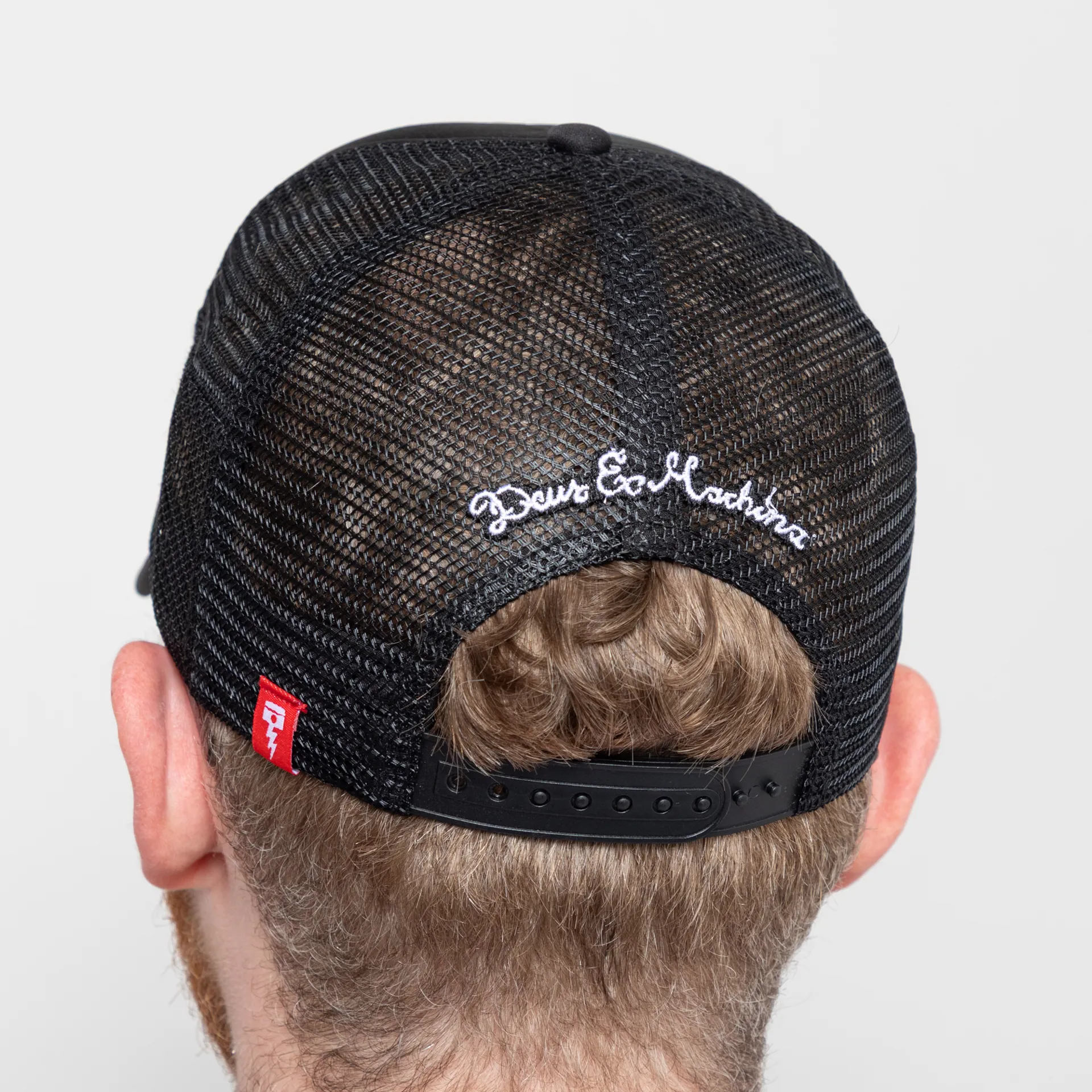 Tried and tested in the Deus House of Simple Pleasures in Sydney the new Circle Logo Trucker is on the scene in black.