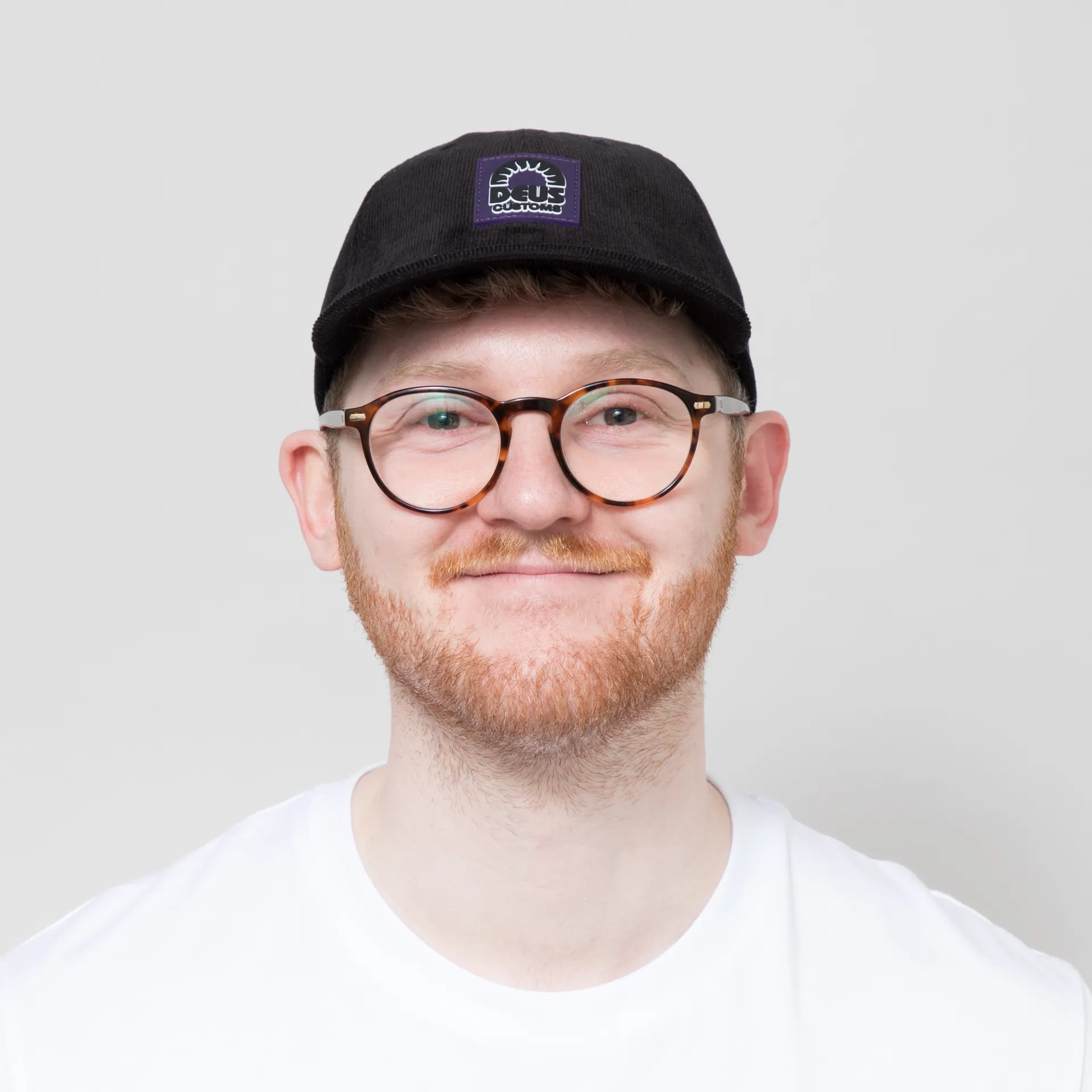 A six-panel from Deus, constructed from durable cotton corduroy with embroidered eyelets throughout. It has a curved brim, a metal adjuster to the back and is finished with a rubber-branded patch to the front.