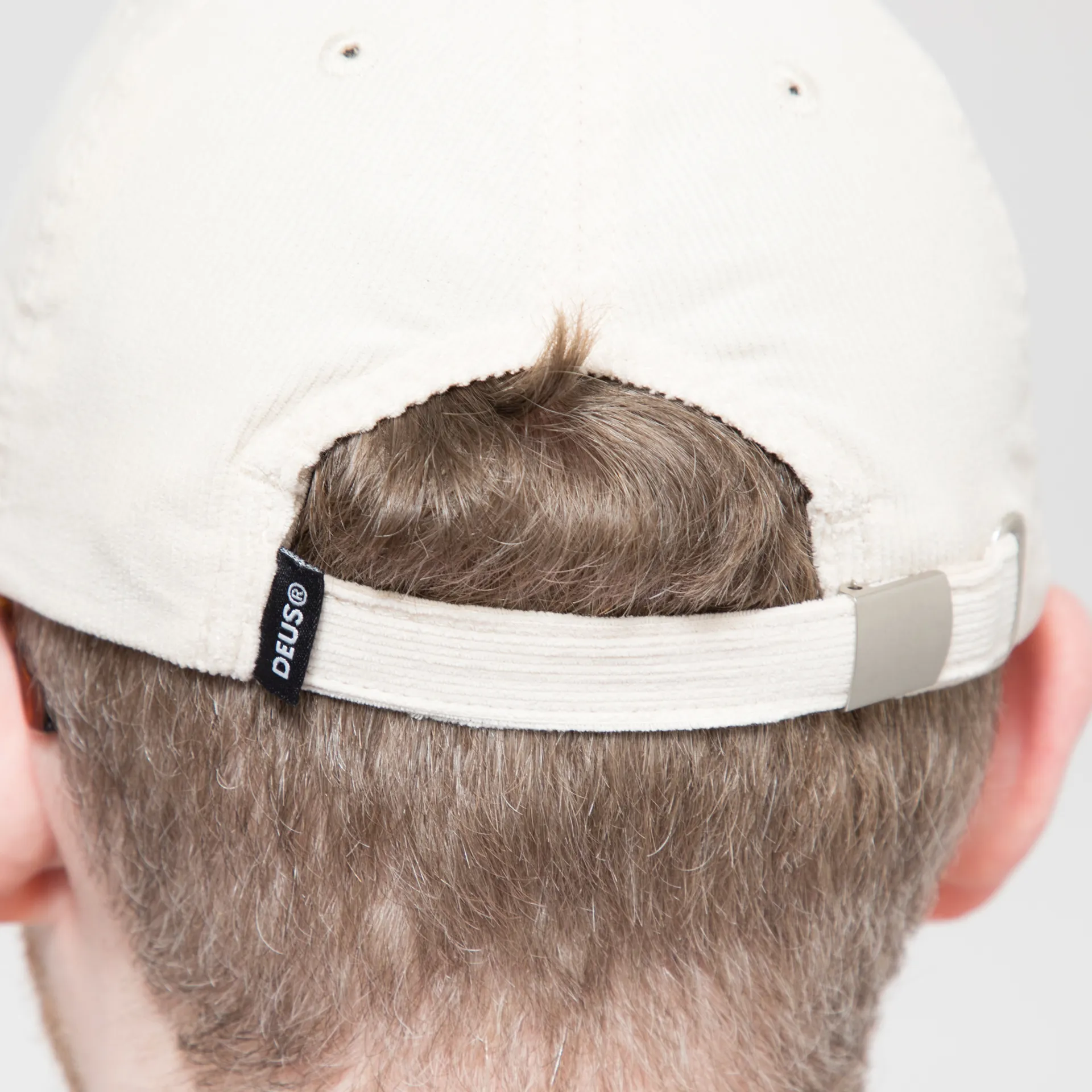 A six-panel from Deus, constructed from durable cotton corduroy with embroidered eyelets throughout. It has a curved brim, a metal adjuster to the back and is finished with a rubber-branded patch to the front.