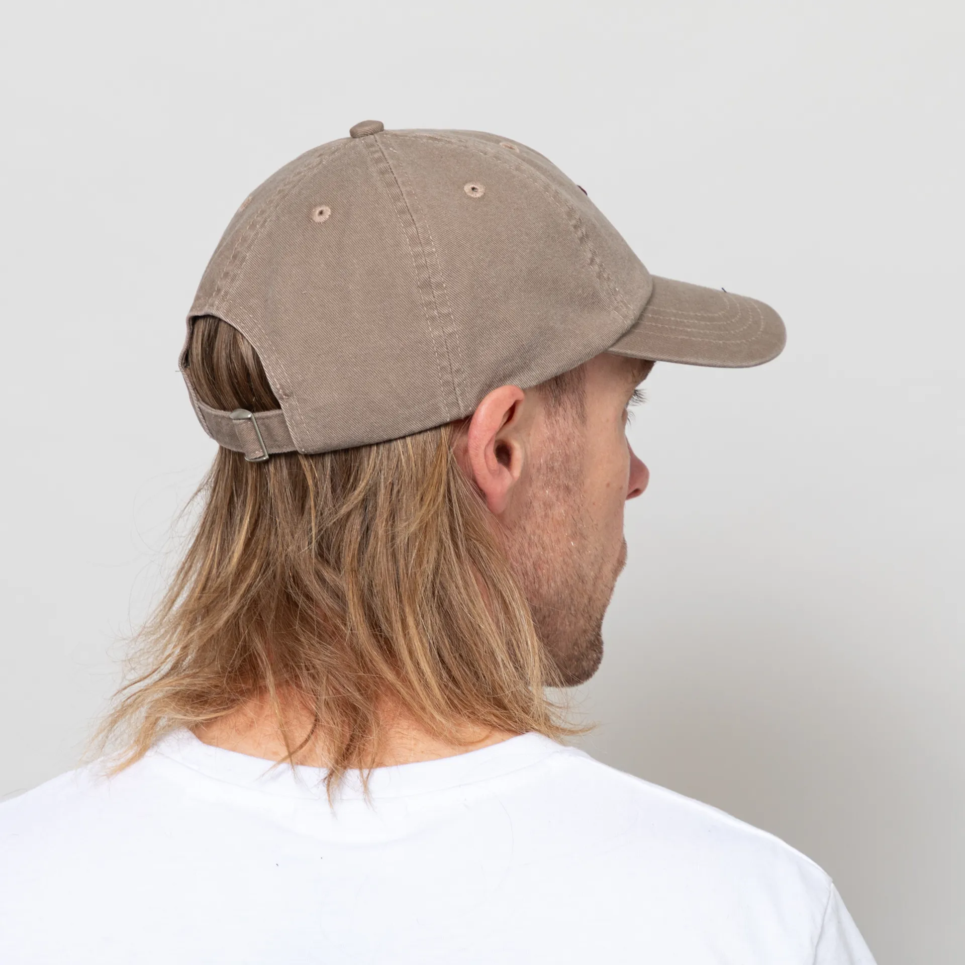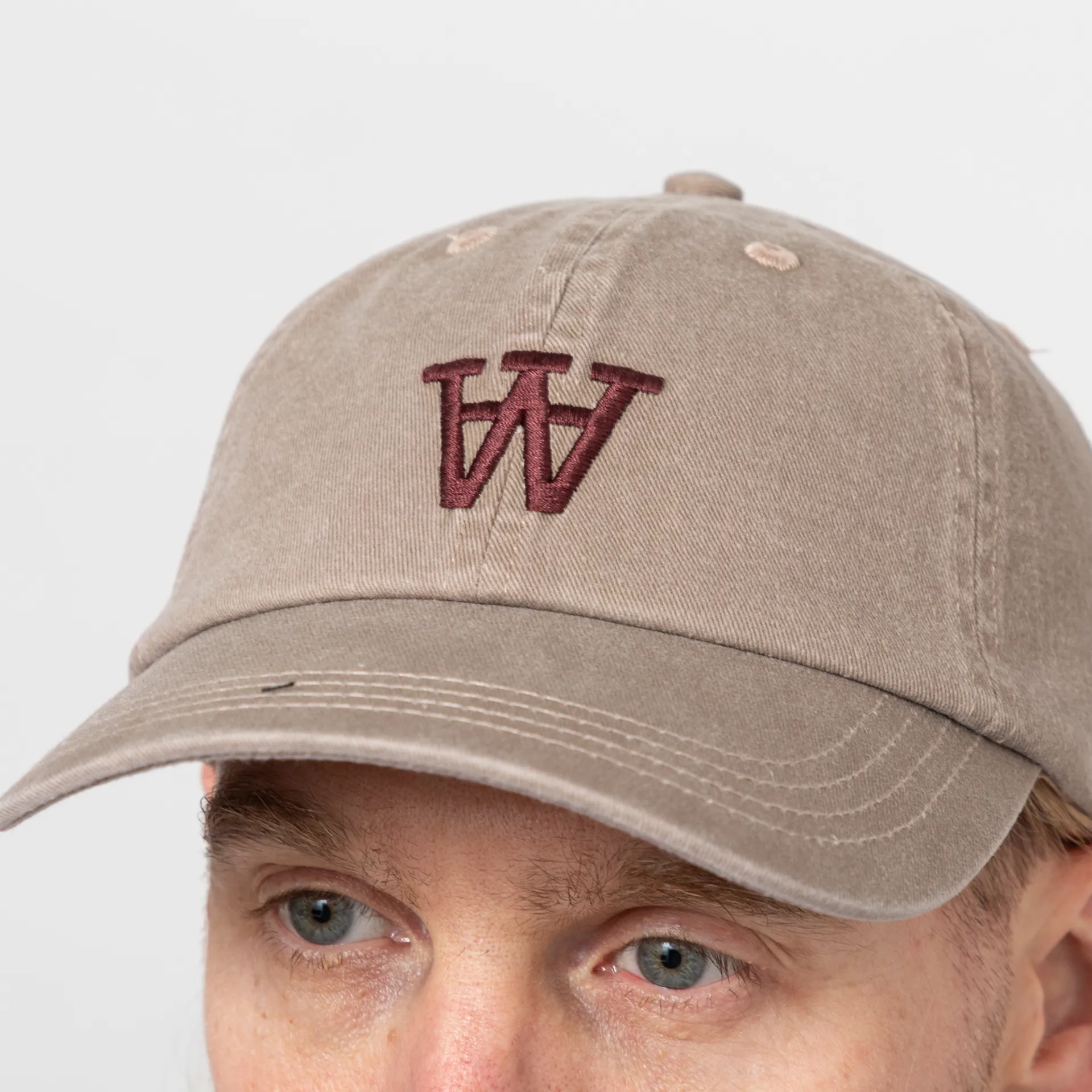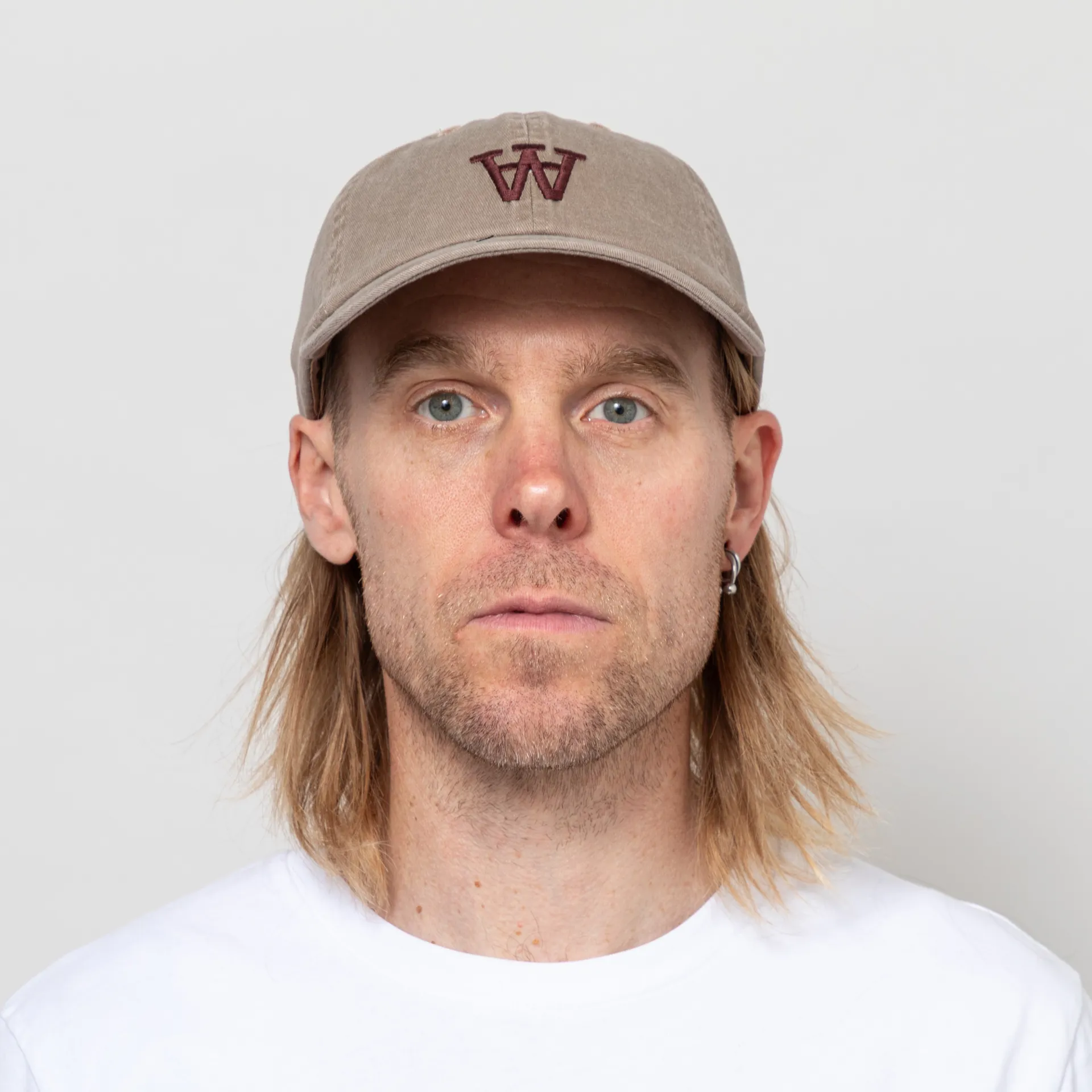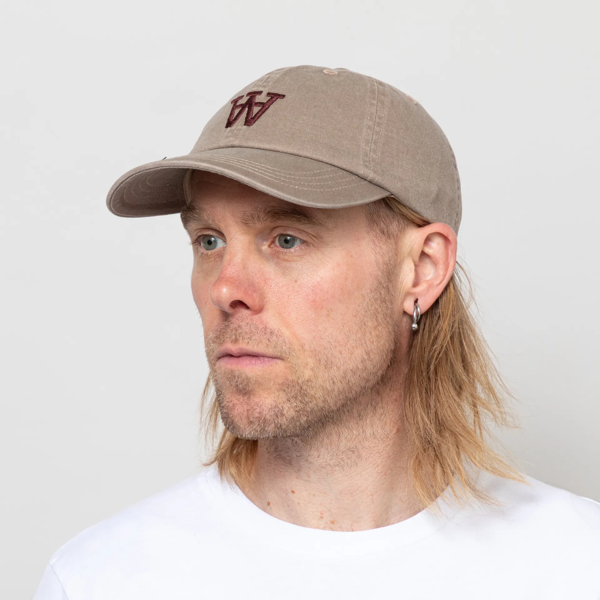 A six-panel from Double A, constructed from durable organic cotton, with embroidered eyelets, a curved brim and buckle adjuster to the back. Finished with an embroidered Double A logo to the front.