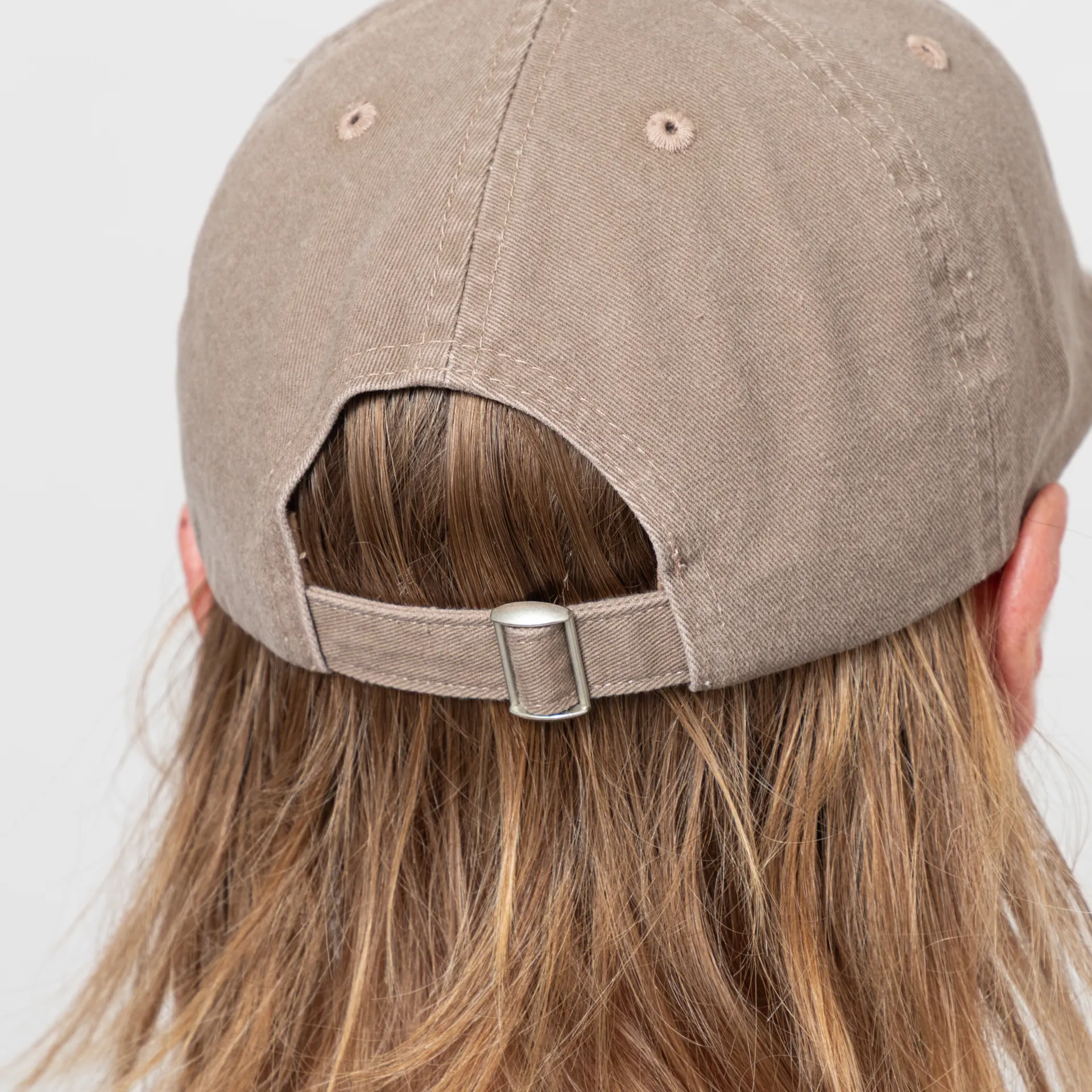 A six-panel from Double A, constructed from durable organic cotton, with embroidered eyelets, a curved brim and buckle adjuster to the back.