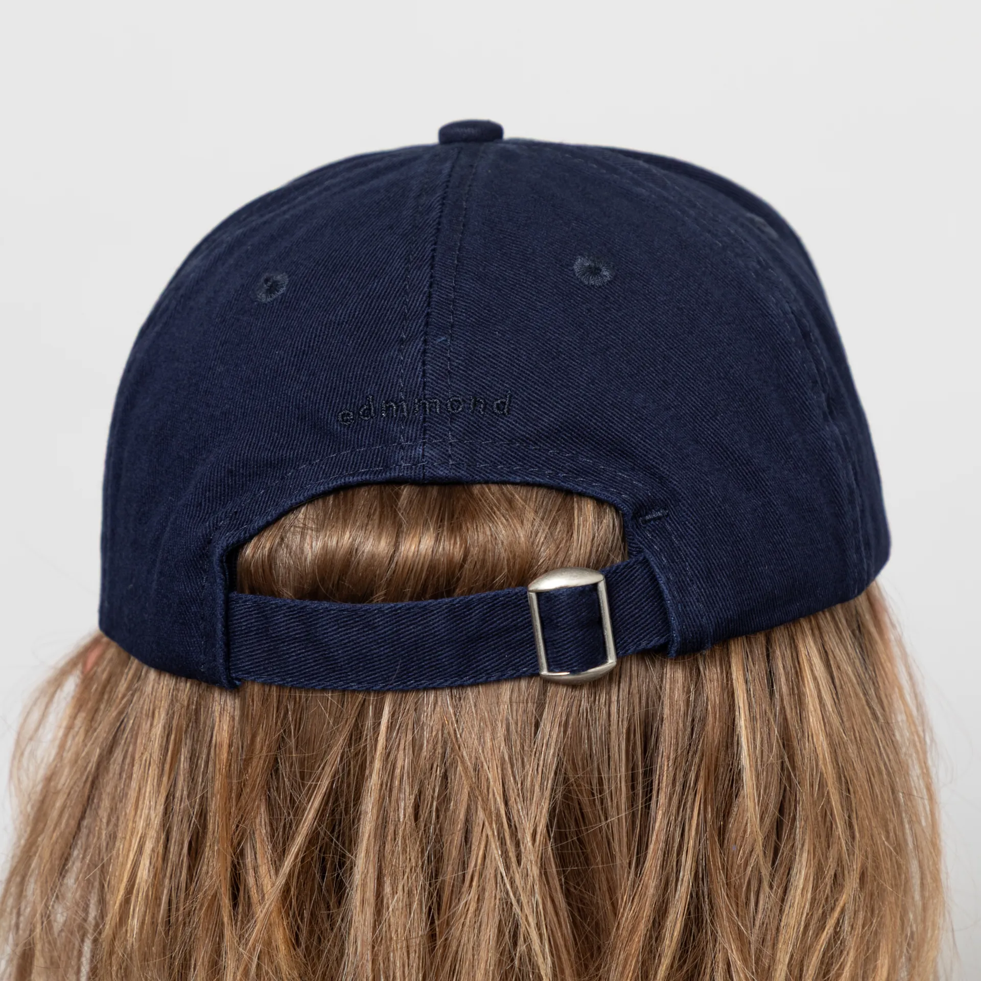 A six-panel from Edmmond Studios, constructed from 100% cotton with a curved brim and embroidered eyelets.